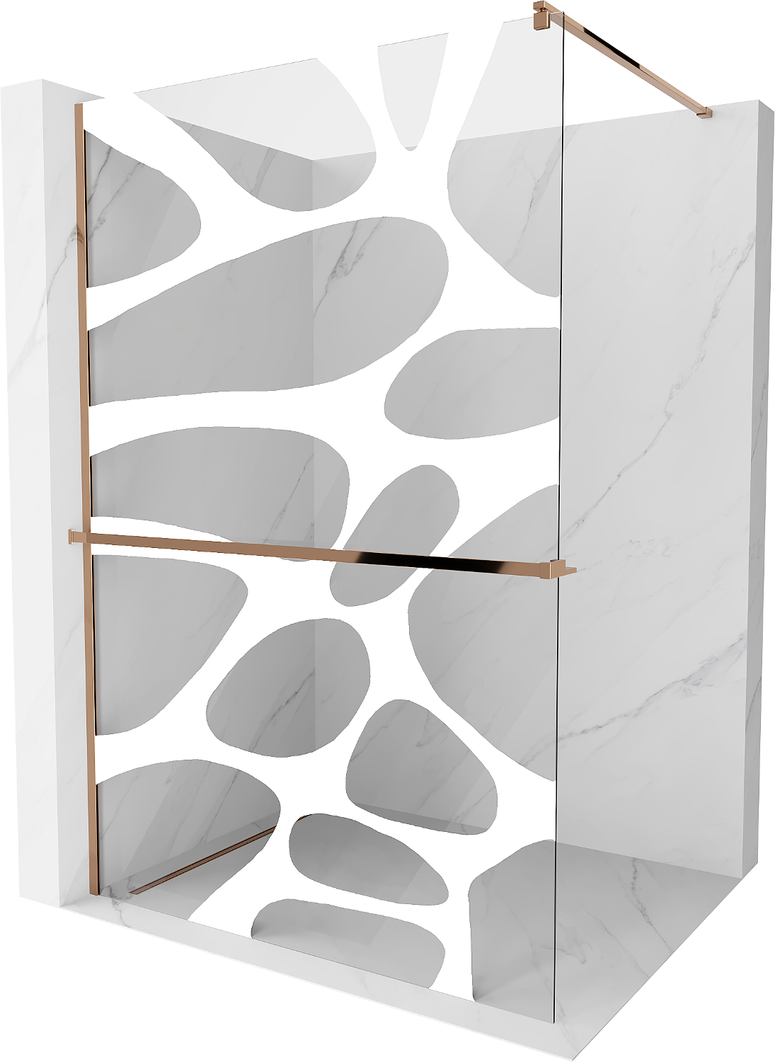 Mexen Kioto+ ścianka prysznicowa z półką Walk-in 140 x 200 cm, biała fala, różowe złoto - 800-140-121-60-97