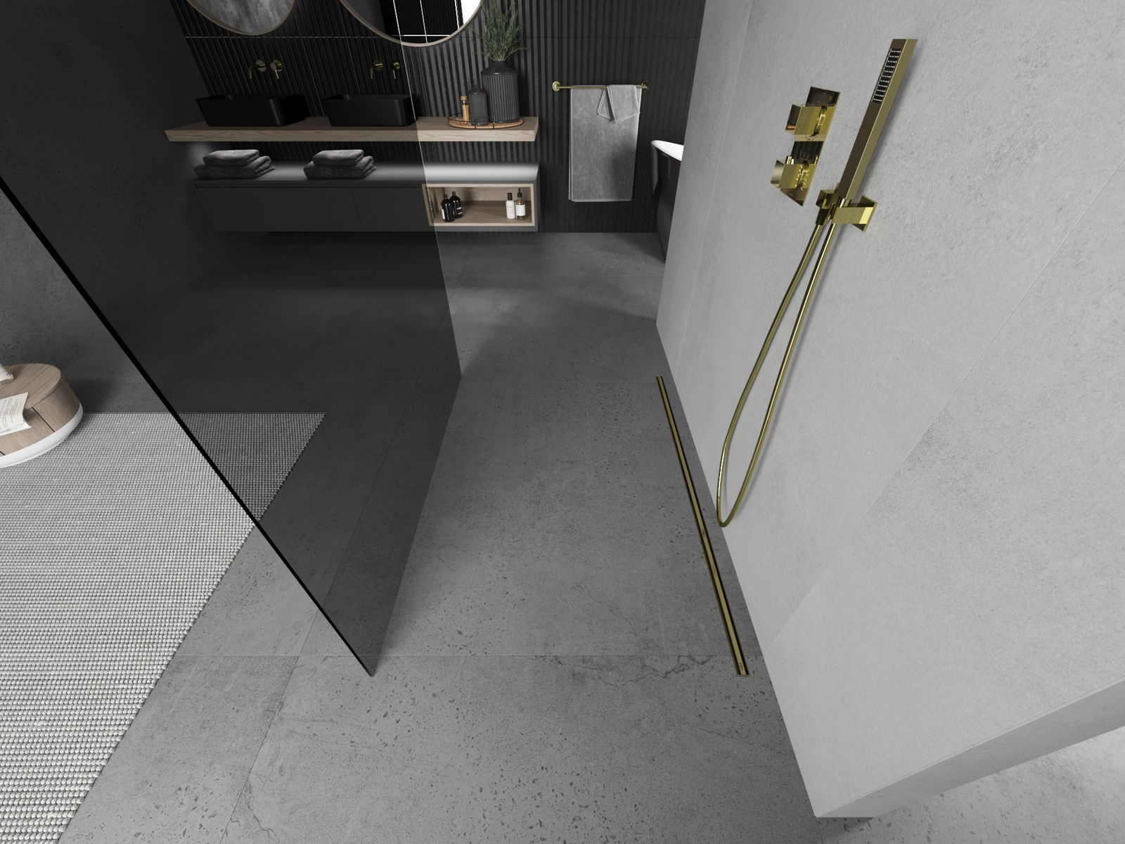 Mexen Kioto ścianka prysznicowa wolnostojąca 110 x 200 cm, grafit 8 mm, złota - 800-110-002-50-40