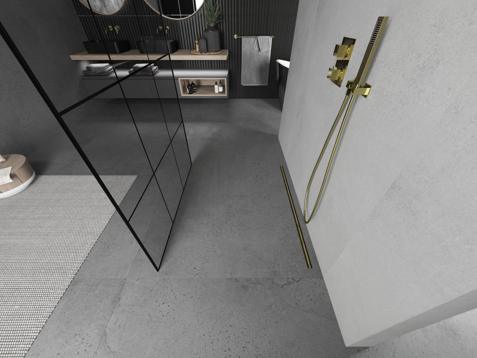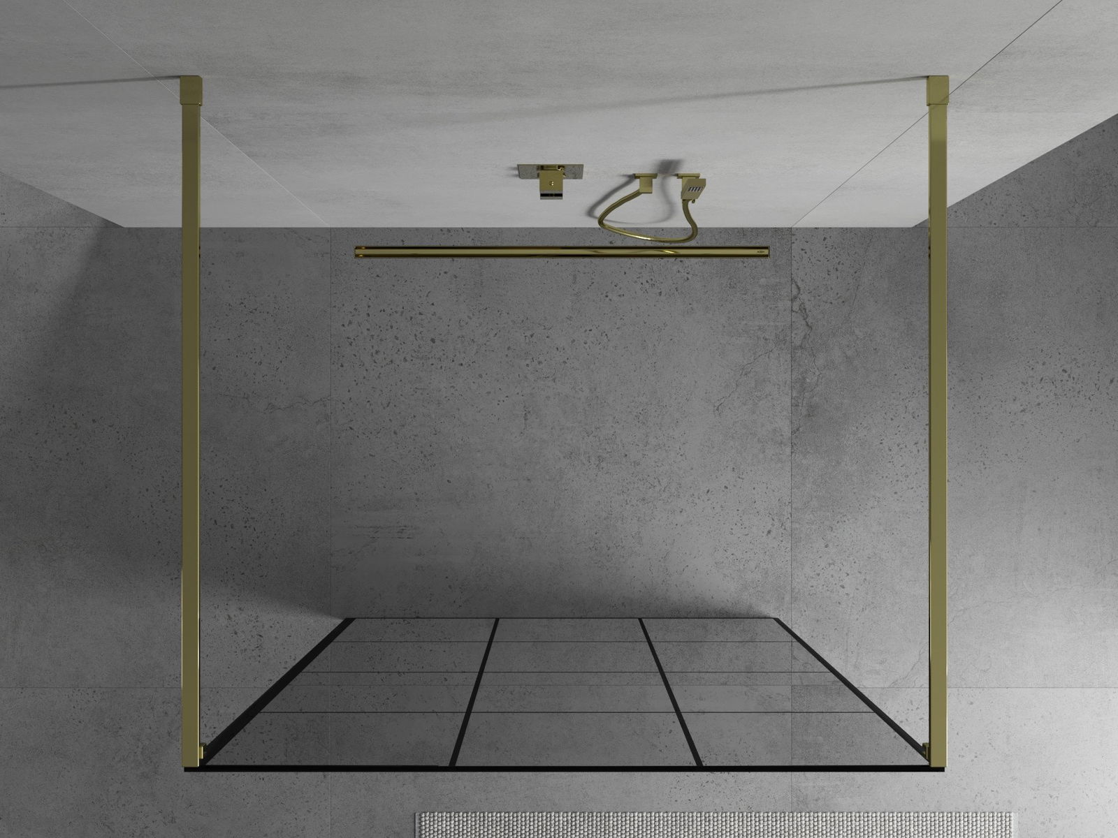 Mexen Kioto ścianka prysznicowa wolnostojąca 100 x 200 cm, czarna kratka 8 mm, złota - 800-100-002-50-77