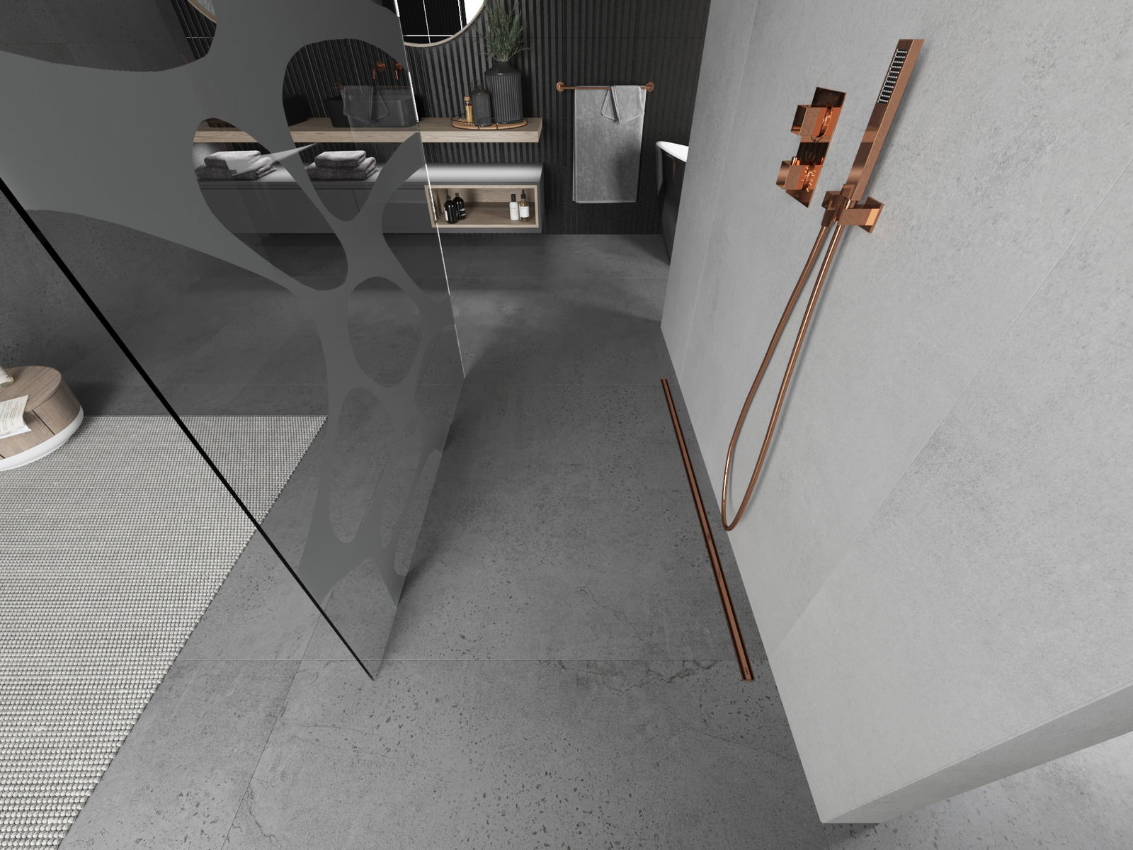 Mexen Kioto ścianka prysznicowa wolnostojąca 120 x 200 cm, biała fala 8 mm, różowe złoto - 800-120-002-60-97