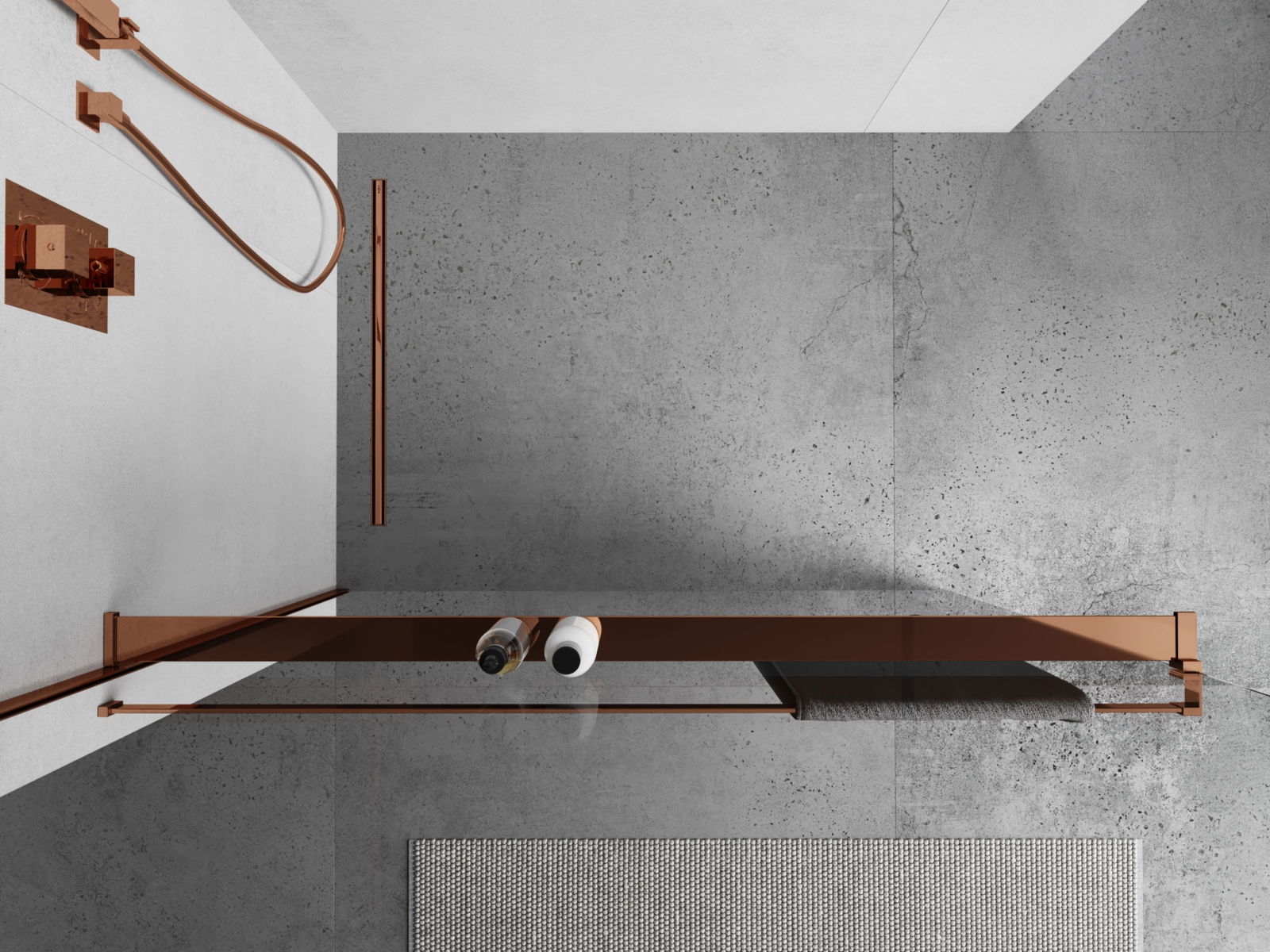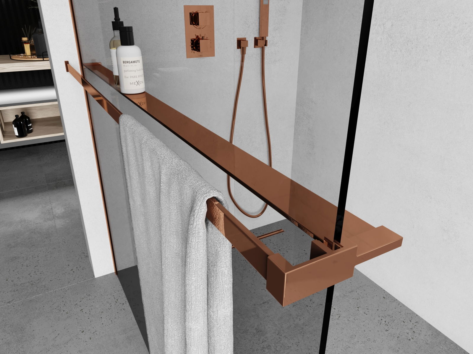 Mexen półka do ścianki prysznicowej z relingiem na ręczniki, różowe złoto - 800-02-60