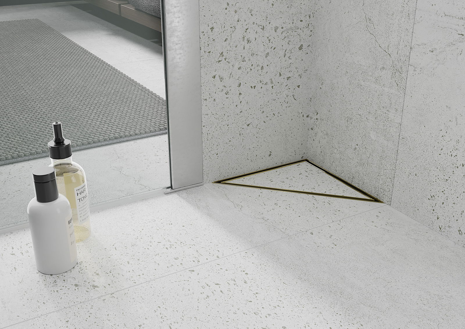 Dwustronna maskownica z możliwością obrócenia w każdym momencie pozwala na zmianę aranżacji. Z jednej strony znajduje się gładka stal nierdzewna, po odwróceniu maskownicę można zabudować płytkami, by tworzyła połączenie z podłogą.