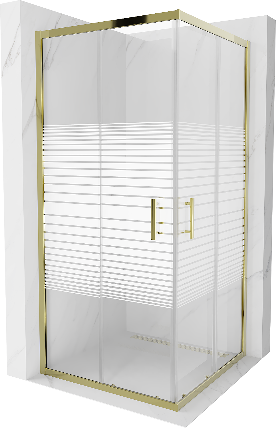 Mexen Rio kabina prysznicowa kwadratowa 90 x 90 cm, białe pasy, złota - 860-090-090-50-20