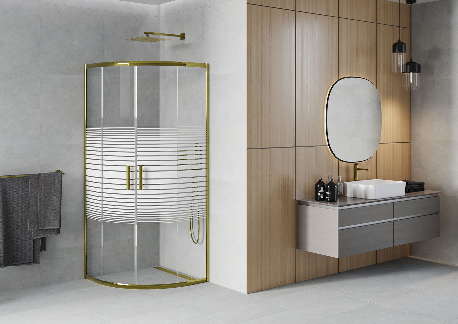 Poręczny i wygodny uchwyt został wykonany z trwałego i odpornego metalu. Modny kształt w połączeniu z wykończeniem dopasowanym do koloru profili nadaje całości nowoczesnego i stylowego wyglądu, podkreślając estetykę każdej łazienki.