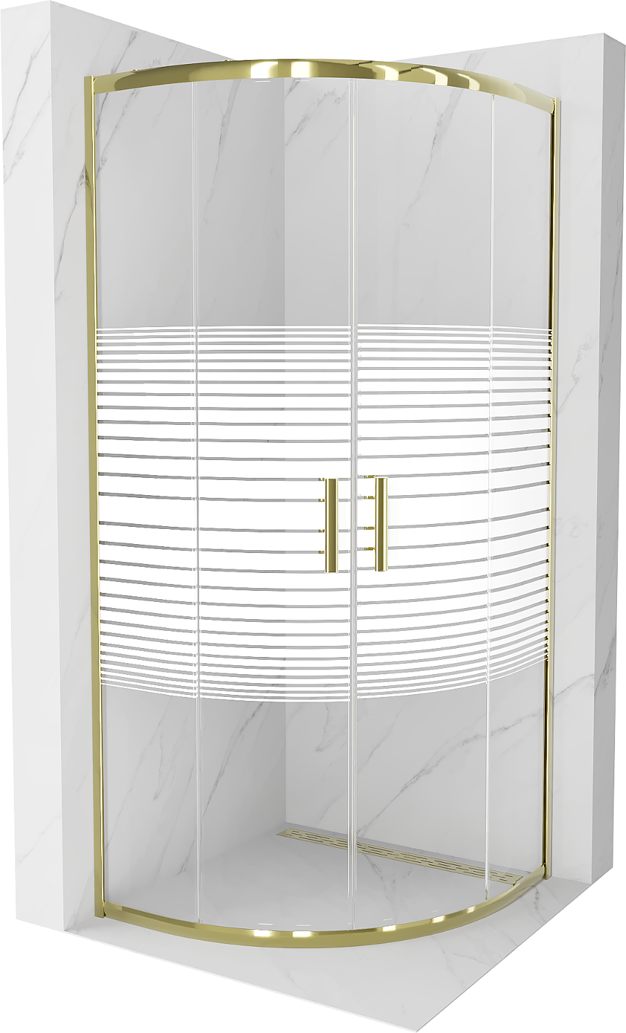 Mexen Rio kabina prysznicowa półokrągła 70 x 70 cm, białe pasy, złota - 863-070-070-50-20