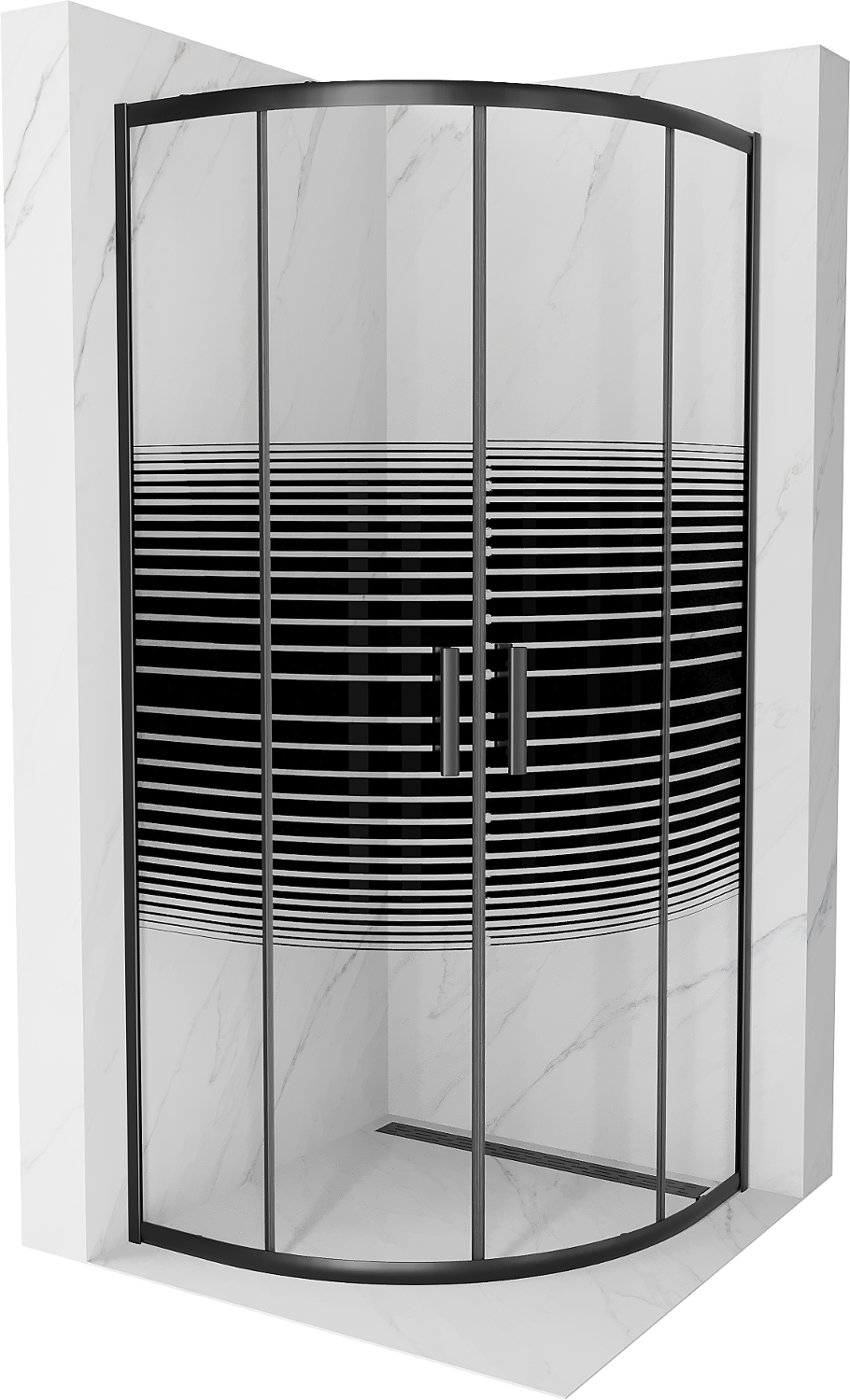 Mexen Rio kabina prysznicowa półokrągła 80 x 80 cm, czarne pasy, czarna - 863-080-080-70-20