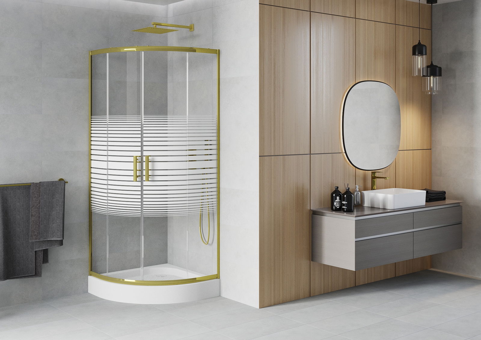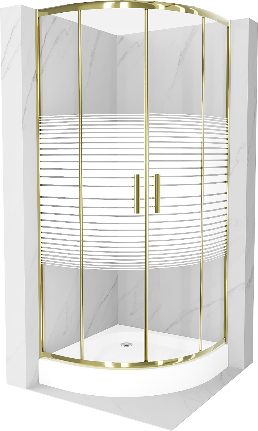 Mexen Rio kabina prysznicowa półokrągła 80 x 80 cm, białe pasy, złota + brodzik Rio, biały - 863-080-080-50-20-4710
