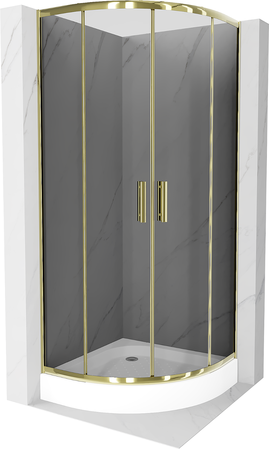 Mexen Rio kabina prysznicowa półokrągła 70 x 70 cm, grafit, złota + brodzik Rio, biały - 863-070-070-50-0-4710