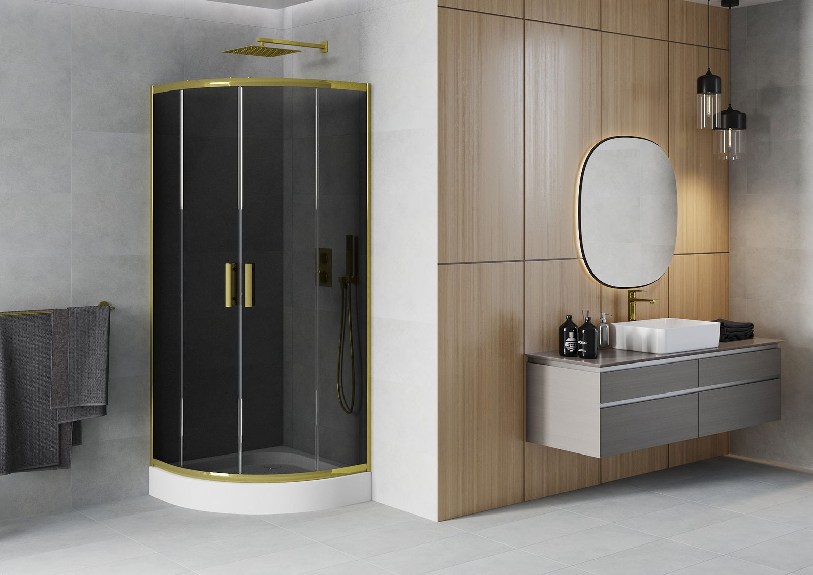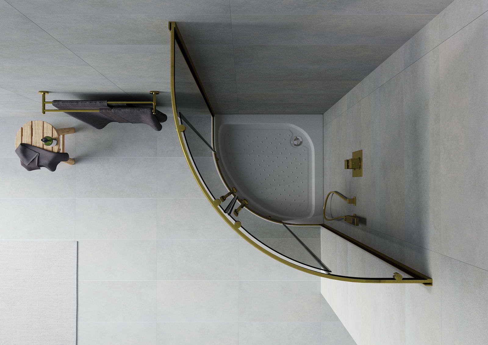 Mexen Rio kabina prysznicowa półokrągła 80 x 80 cm, grafit, złota + brodzik Rio, biały - 863-080-080-50-0-4710