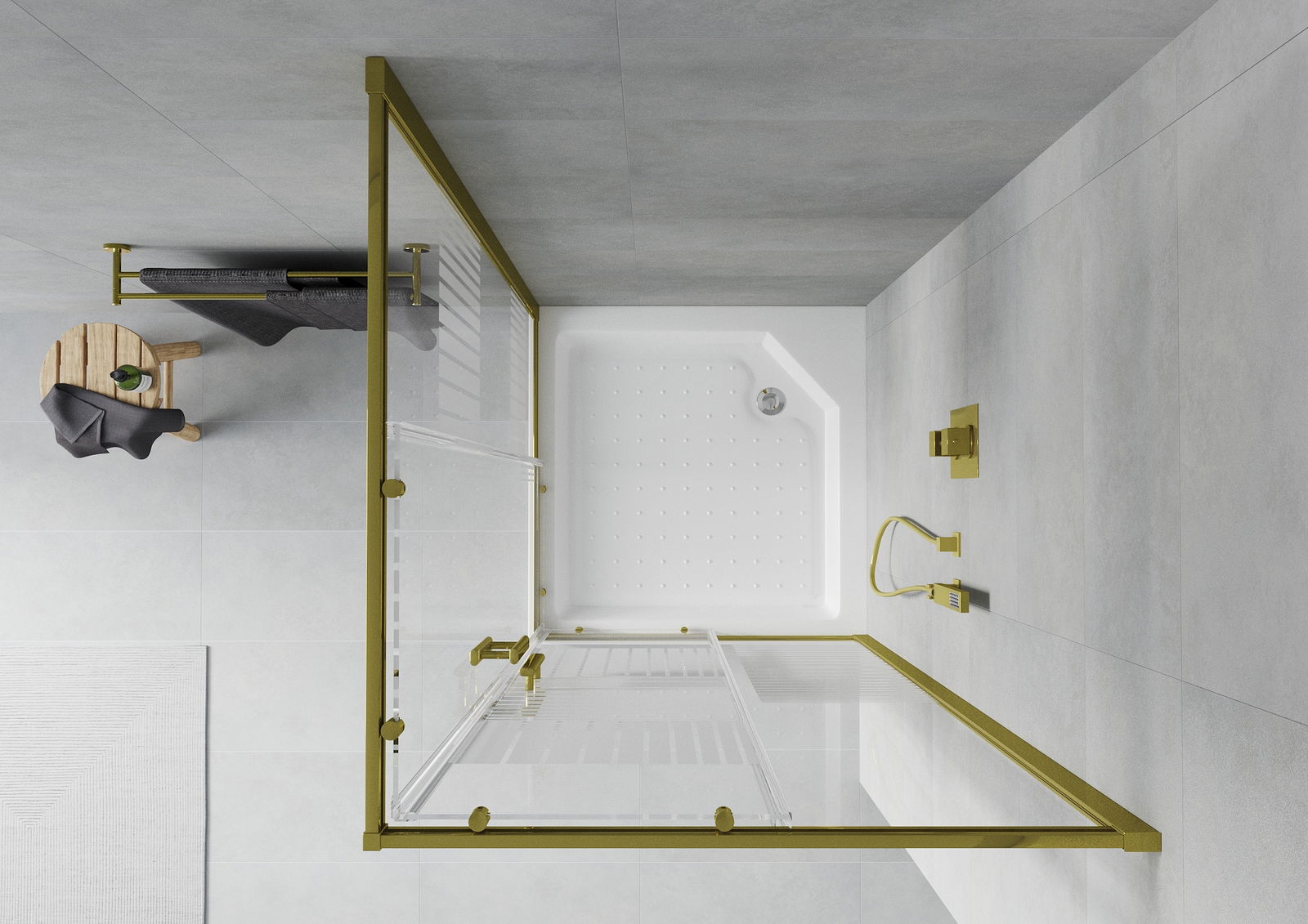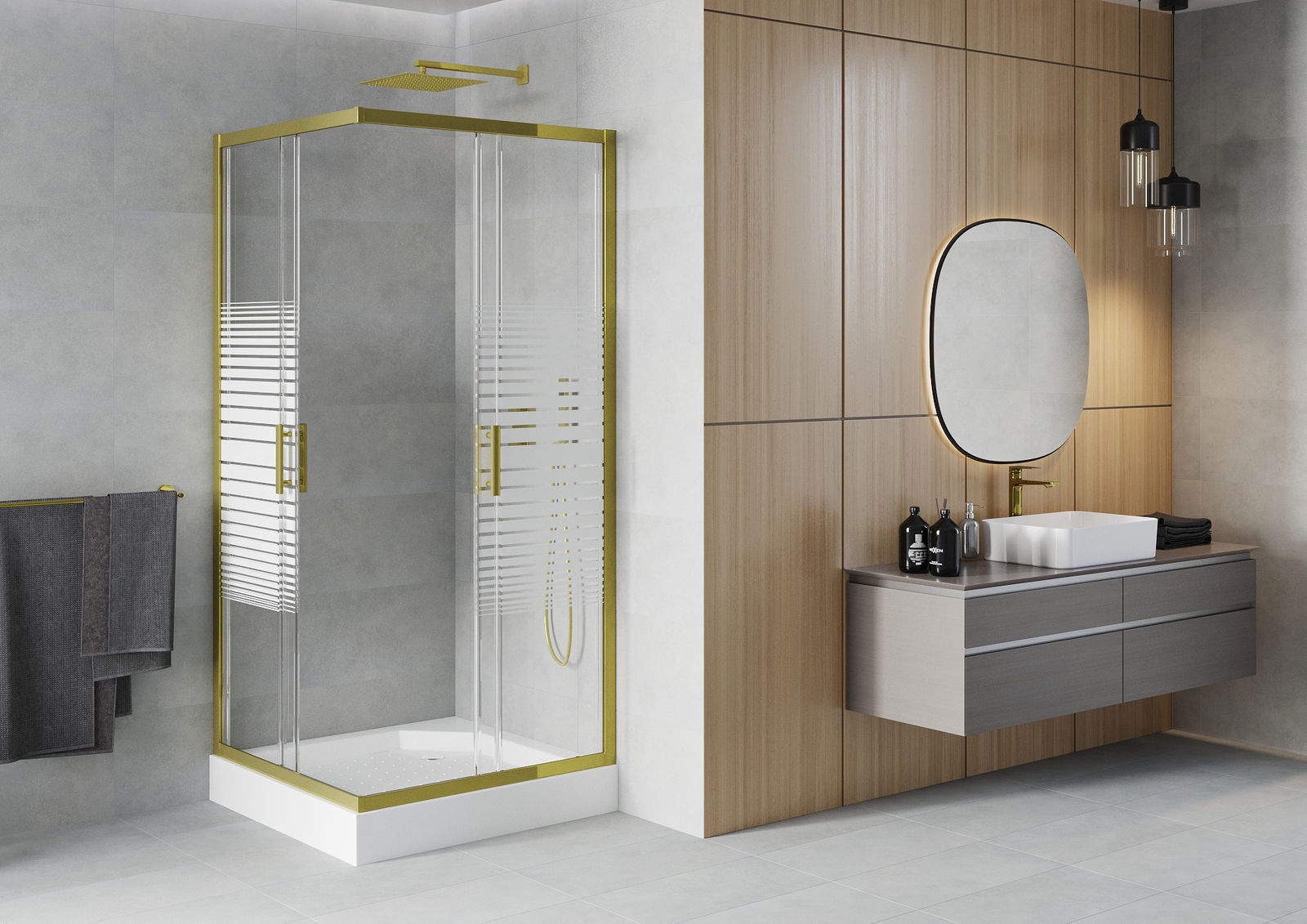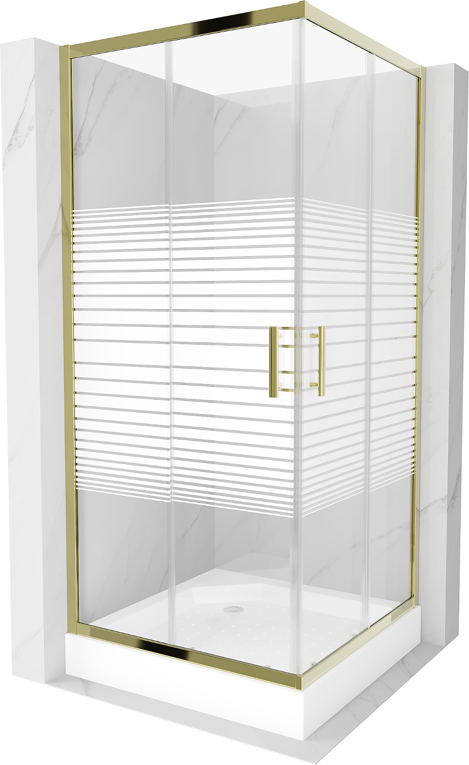 Mexen Rio kabina prysznicowa kwadratowa 90 x 90 cm, białe pasy, złota + brodzik Rio, biały - 860-090-090-50-20-4510