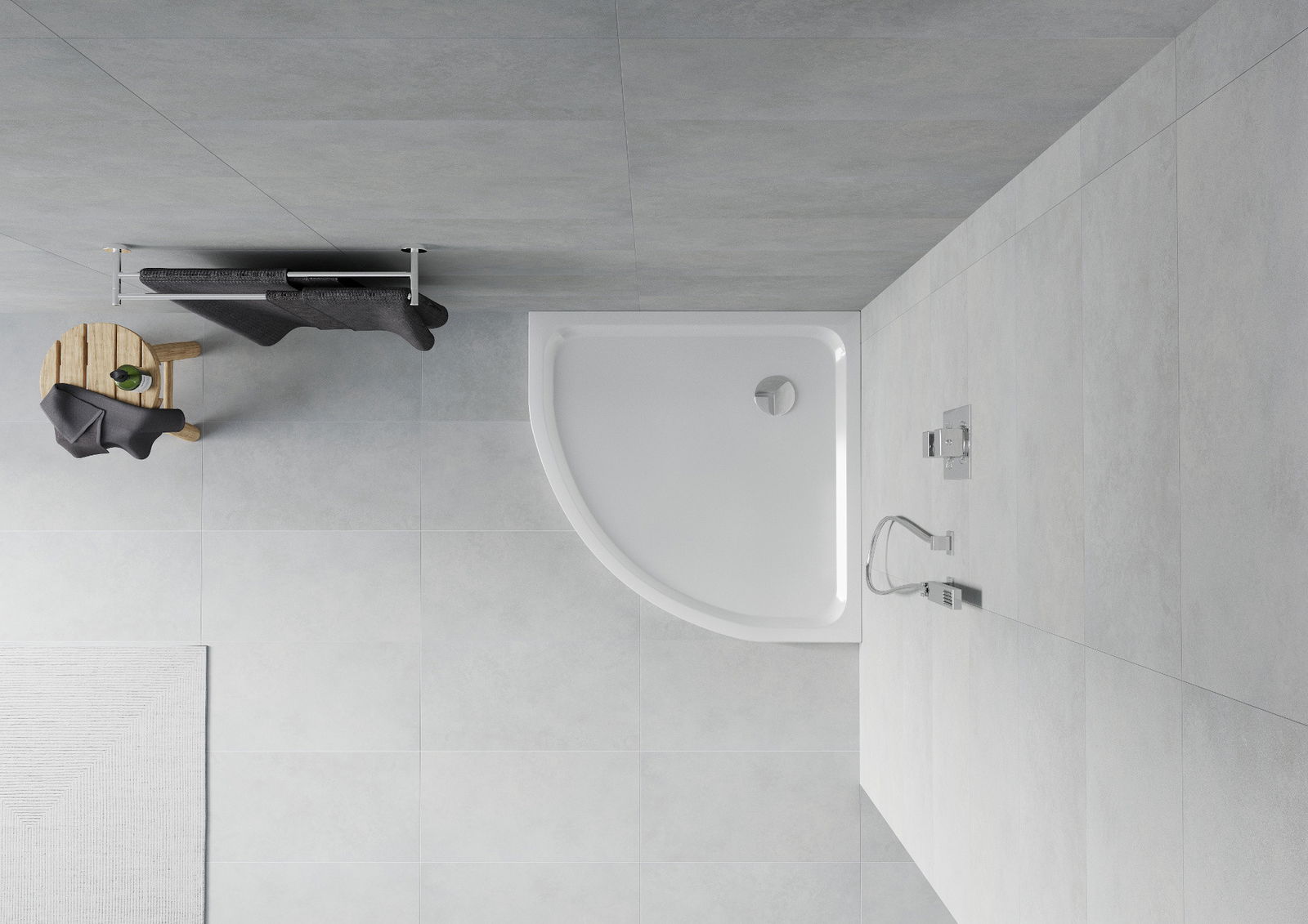 Brodzik został zaprojektowany w taki sposób, by woda mogła swobodnie spływać w kierunku odpływu. Zapewnia szybkie i efektywne odprowadzanie wody z powierzchni brodzika, zapobiegając powstawianiu kałuż i zalewaniu łazienki.