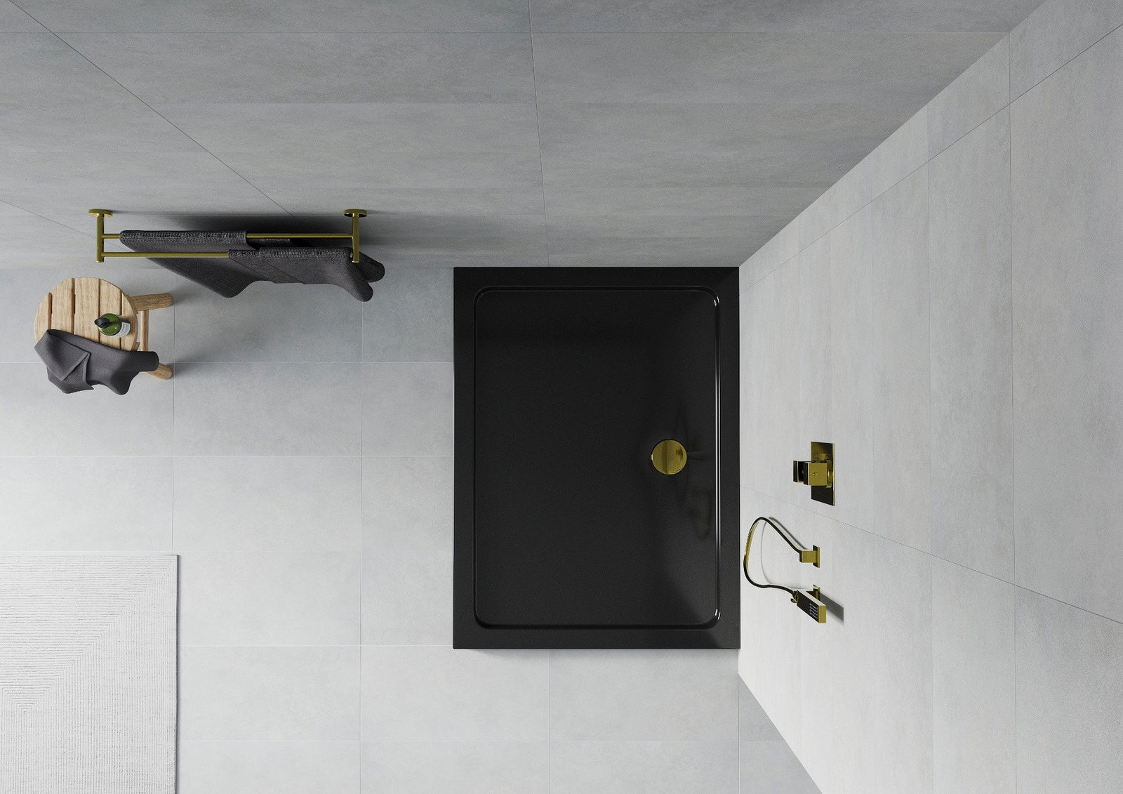 Mexen Flat brodzik prostokątny slim 100 x 70 cm, czarny, syfon złoty - 40707010G