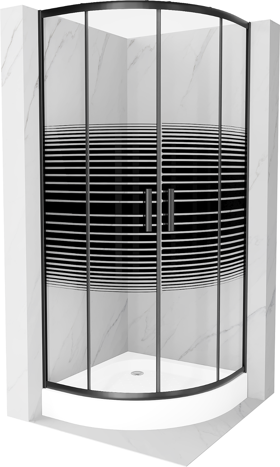 Mexen Rio kabina prysznicowa półokrągła 80 x 80 cm, czarne pasy, czarna + brodzik Rio, biały - 863-080-080-70-20-4710