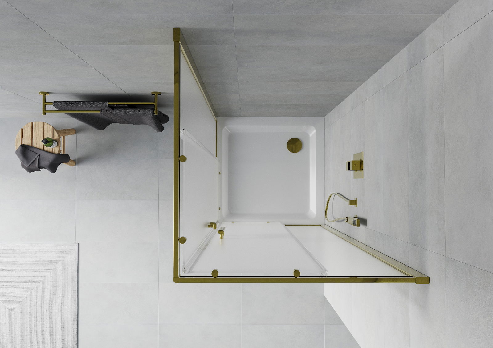Mexen Rio kabina prysznicowa kwadratowa 90 x 90 cm, szron, złota + brodzik Flat, biały - 860-090-090-50-30-4010G