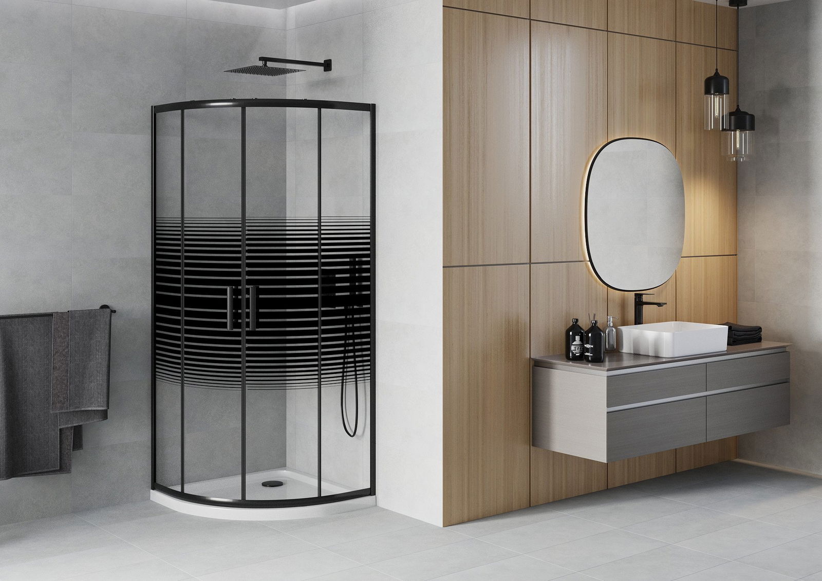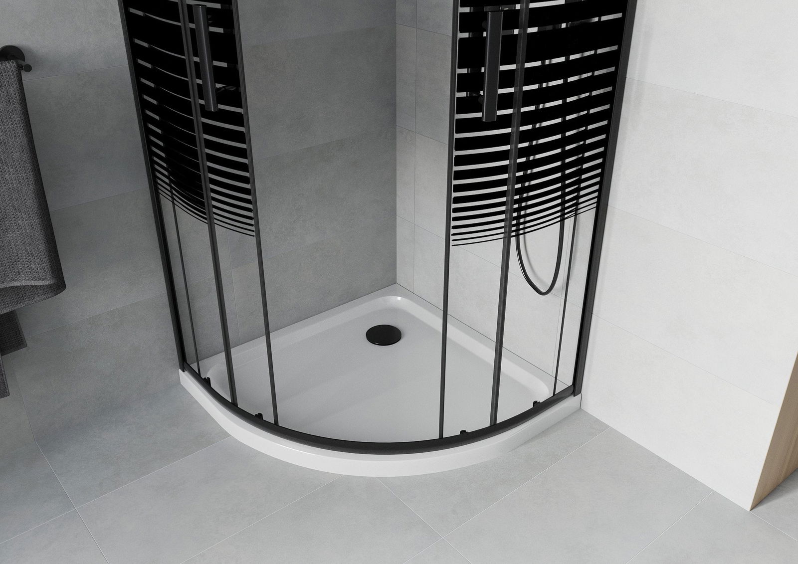 Poręczny i wygodny uchwyt został wykonany z trwałego i odpornego metalu. Modny kształt w połączeniu z wykończeniem dopasowanym do koloru profili nadaje całości nowoczesnego i stylowego wyglądu, podkreślając estetykę każdej łazienki.