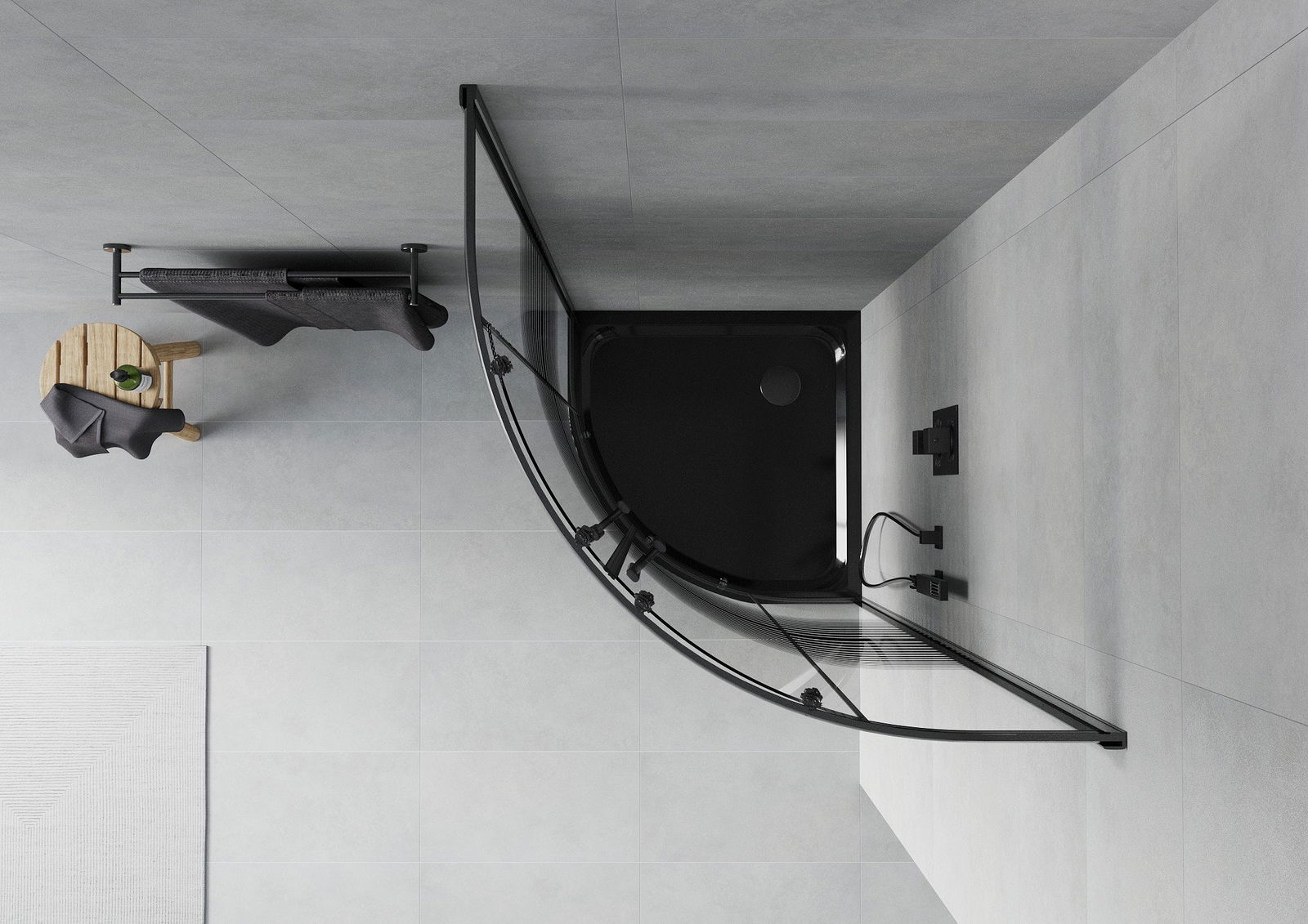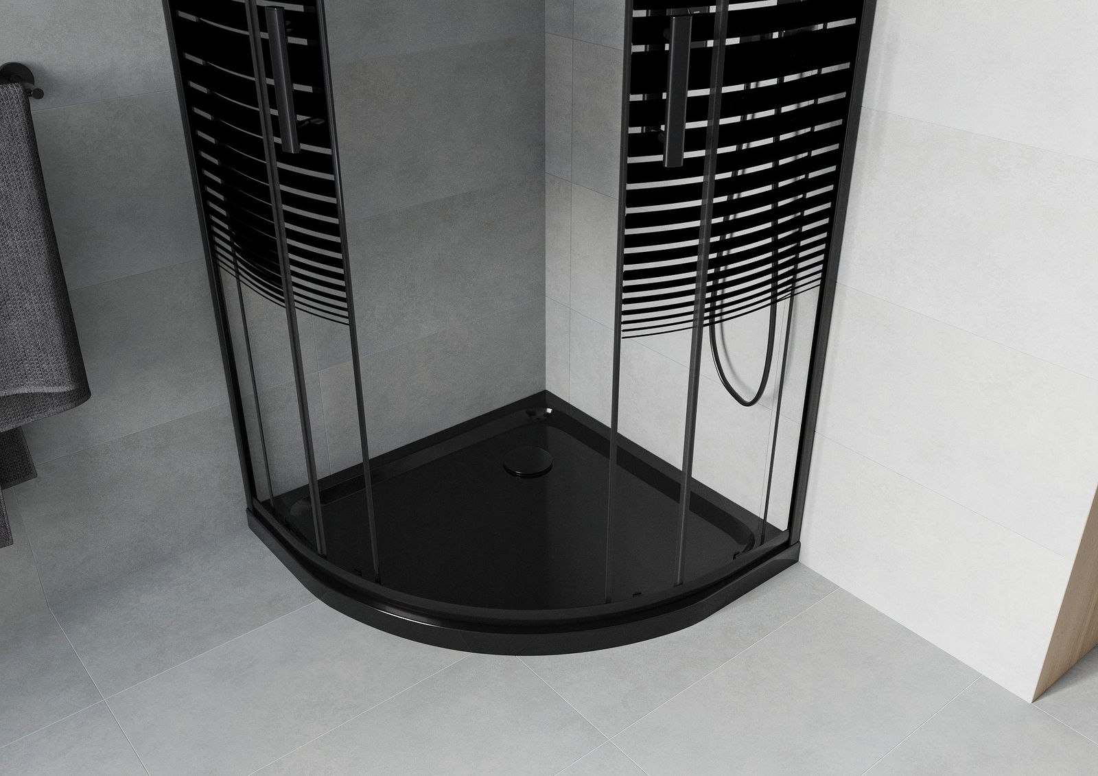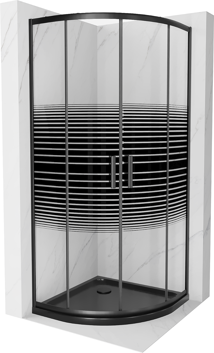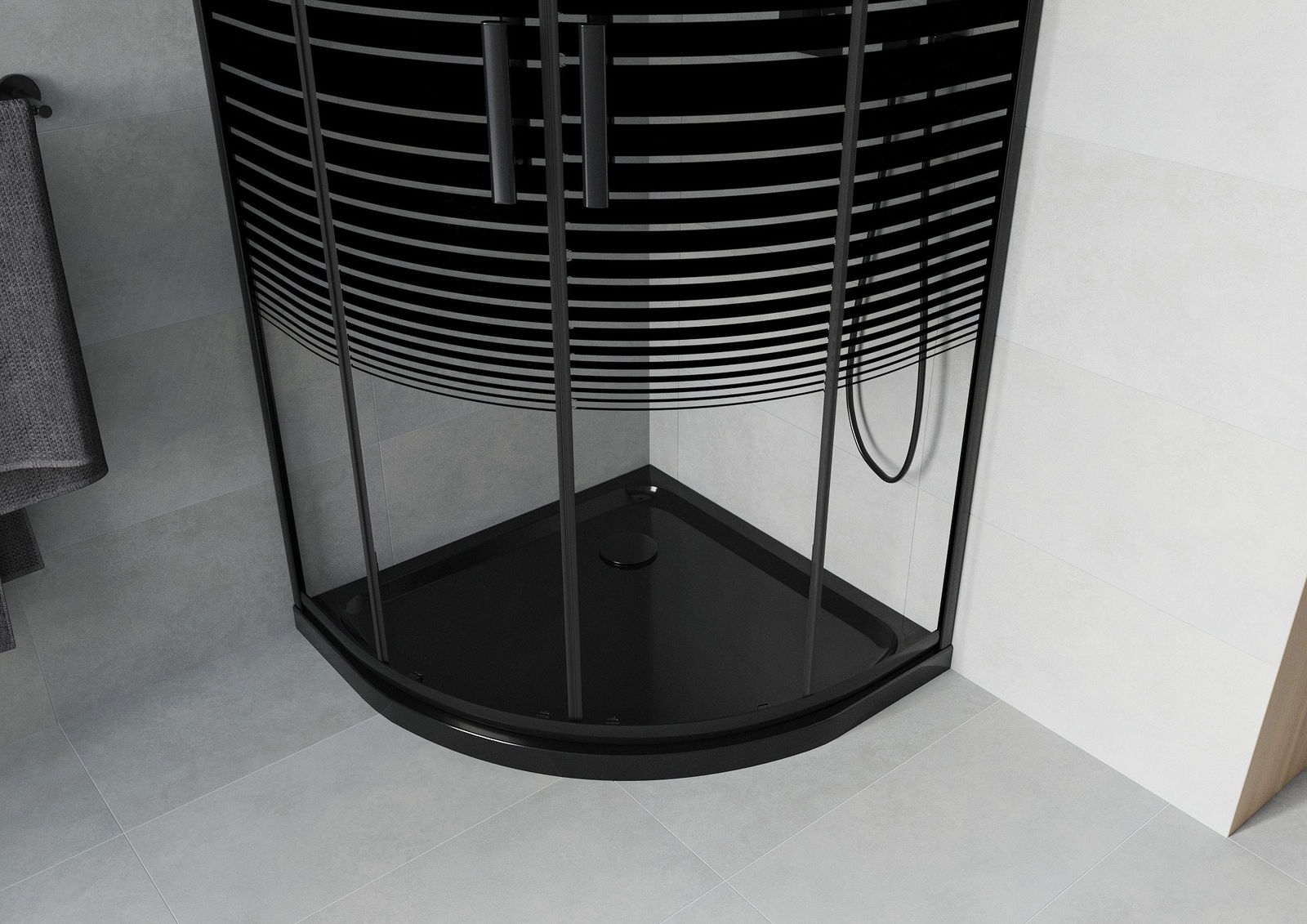 Mexen Rio kabina prysznicowa półokrągła 80 x 80 cm, czarne pasy, czarna + brodzik Flat, czarny - 863-080-080-70-20-4170B