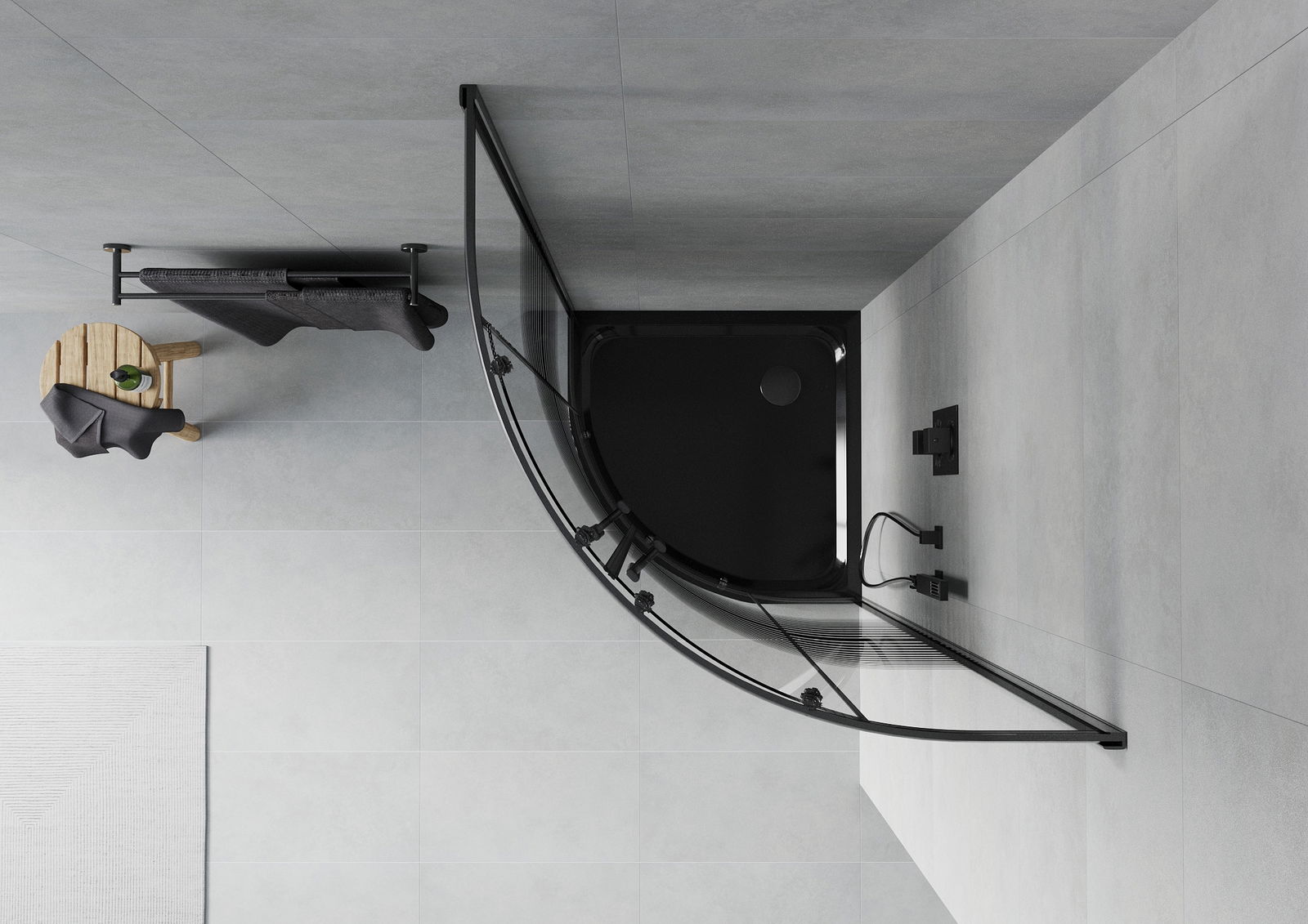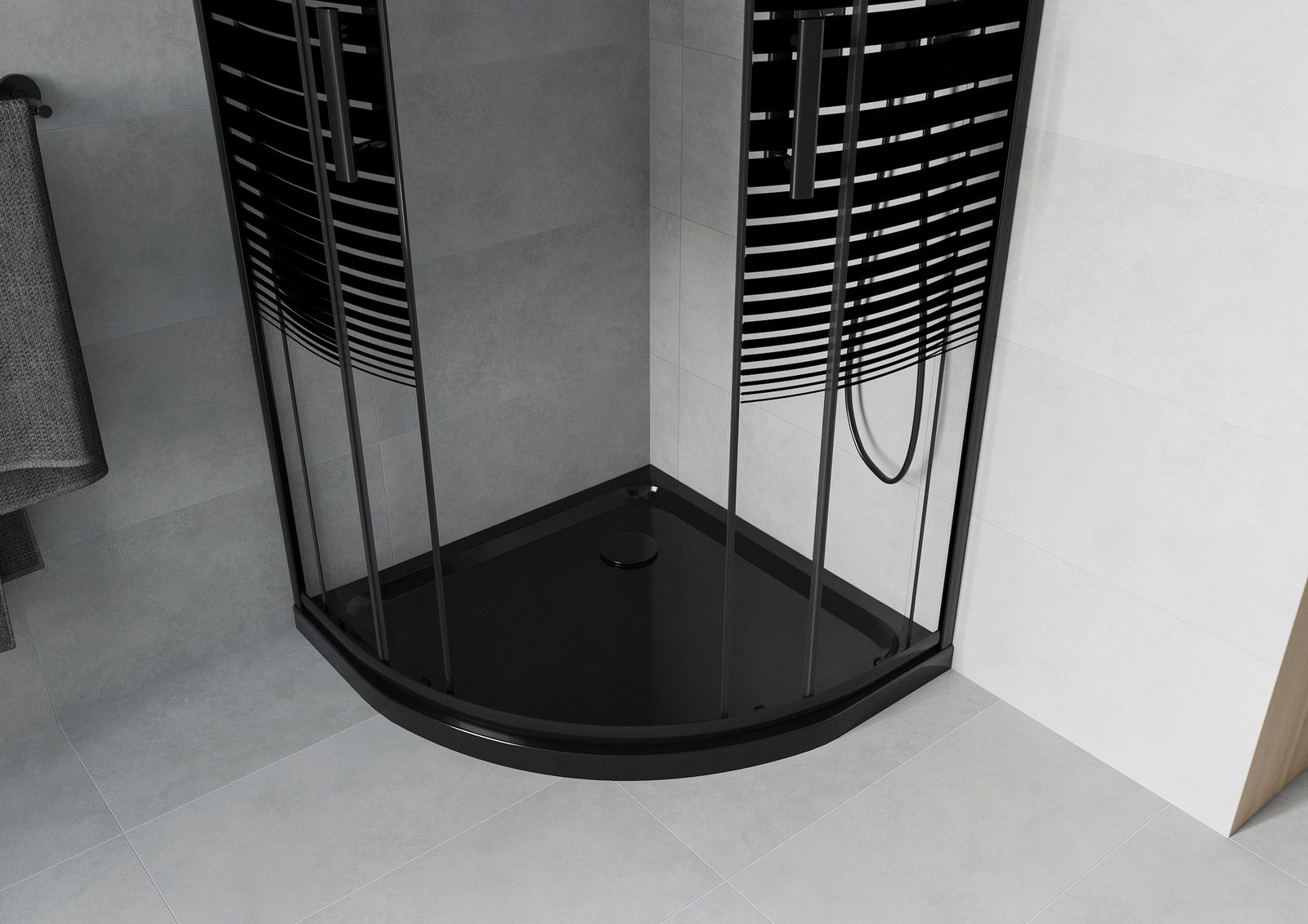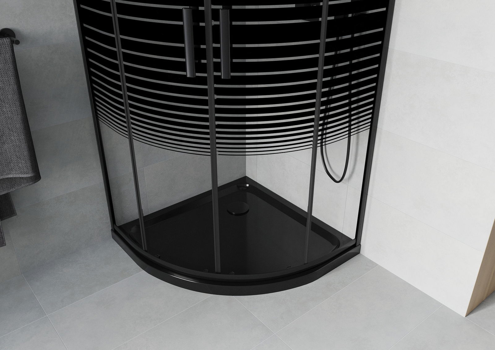 Mexen Rio kabina prysznicowa półokrągła 90 x 90 cm, czarne pasy, czarna + brodzik Flat, czarny - 863-090-090-70-20-4170B