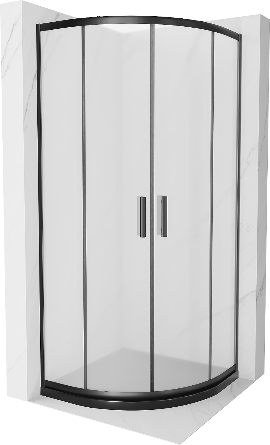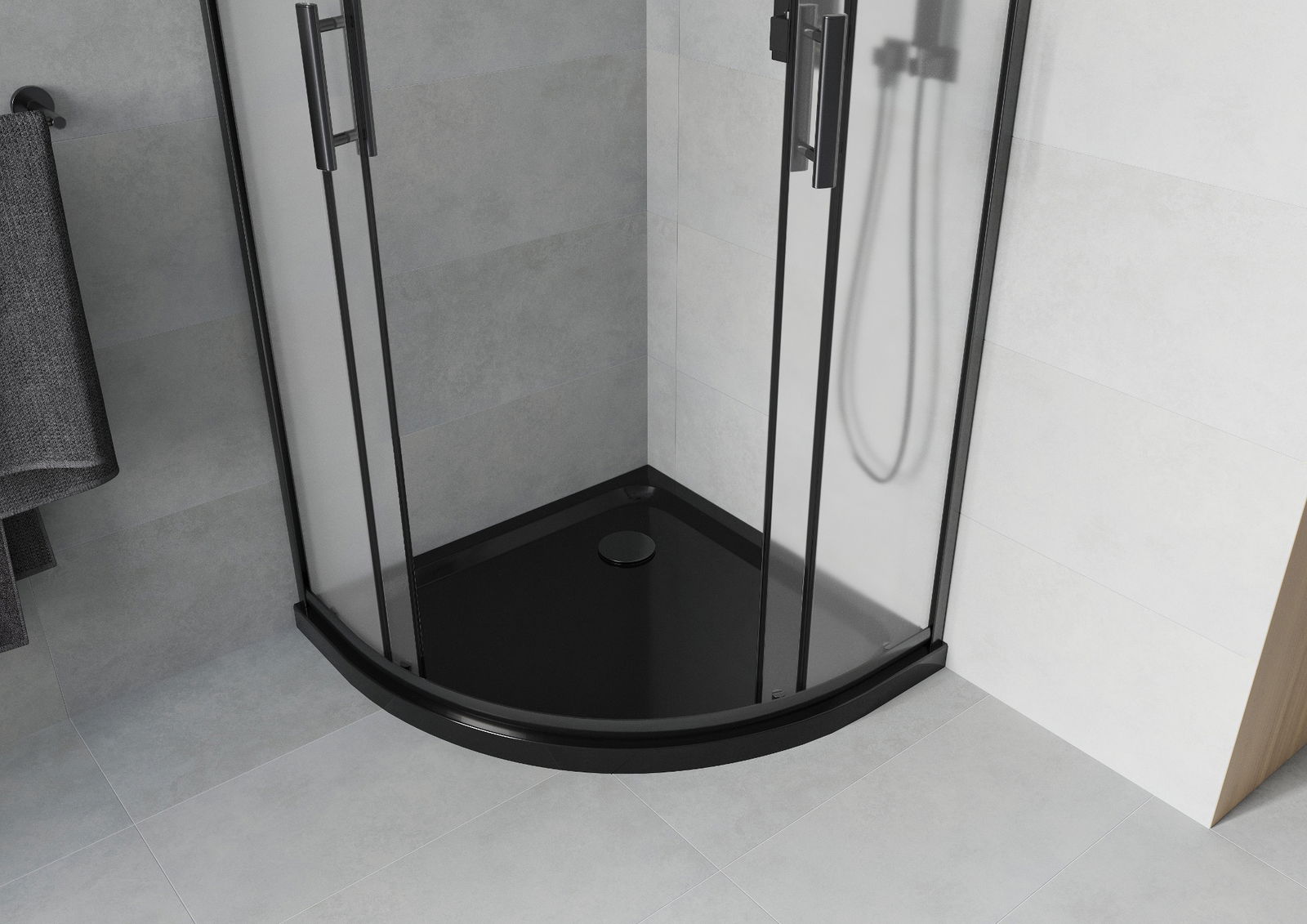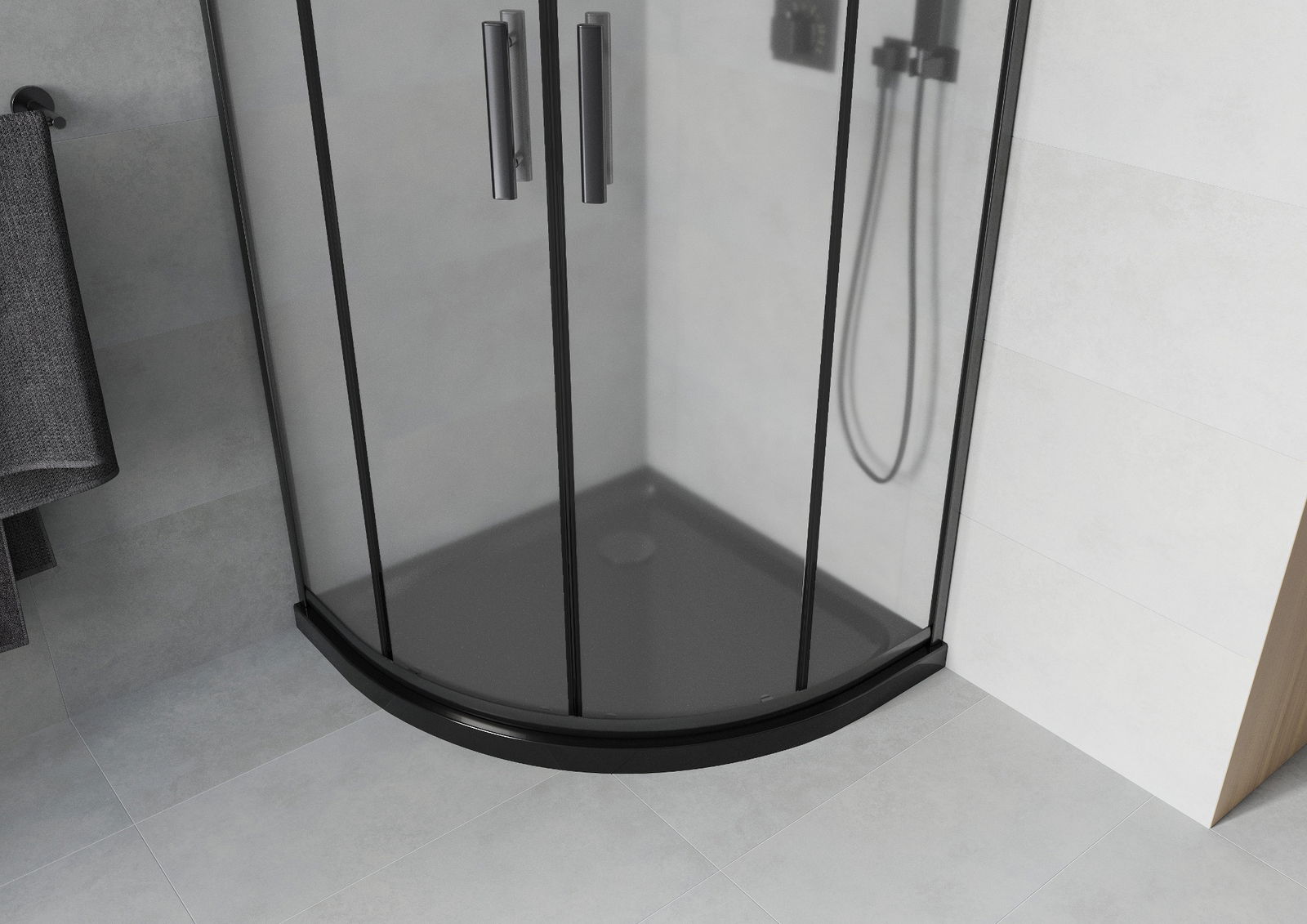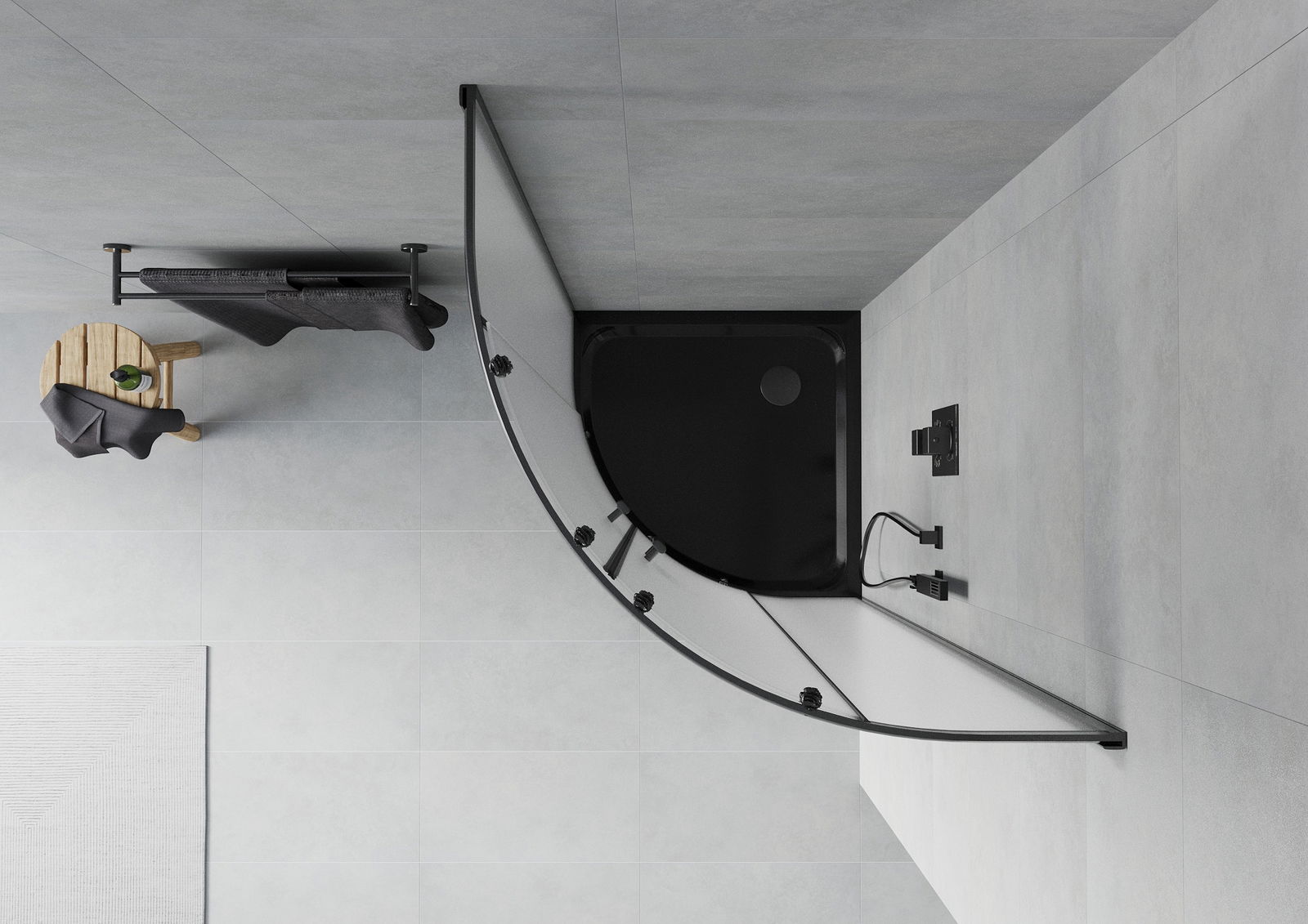 Mexen Rio kabina prysznicowa półokrągła 80 x 80 cm, szron, czarna + brodzik Flat, czarny - 863-080-080-70-30-4170B