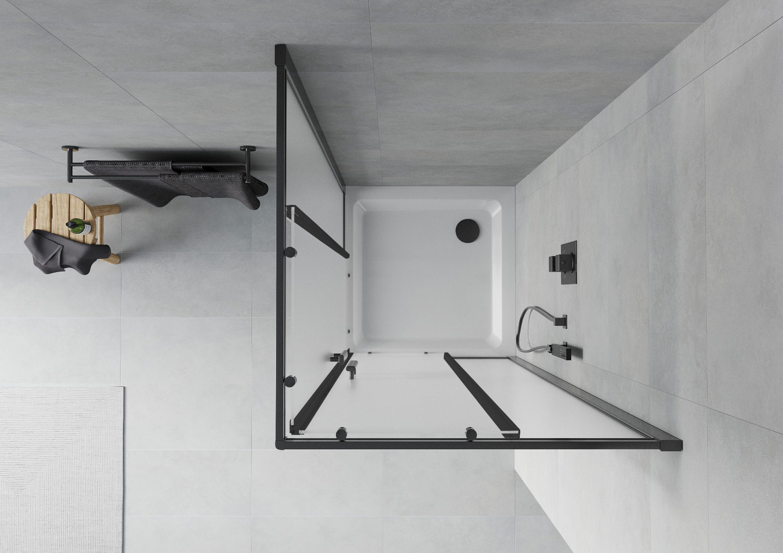 Mexen Rio kabina prysznicowa kwadratowa 80 x 80 cm, szron, czarna + brodzik Flat, biały - 860-080-080-70-30-4010B