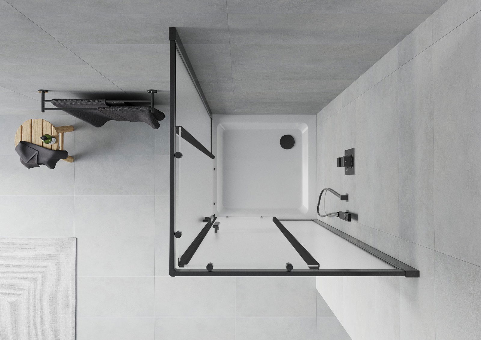 Poręczny i wygodny uchwyt został wykonany z trwałego i odpornego metalu. Modny kształt w połączeniu z wykończeniem dopasowanym do koloru profili nadaje całości nowoczesnego i stylowego wyglądu, podkreślając estetykę każdej łazienki.