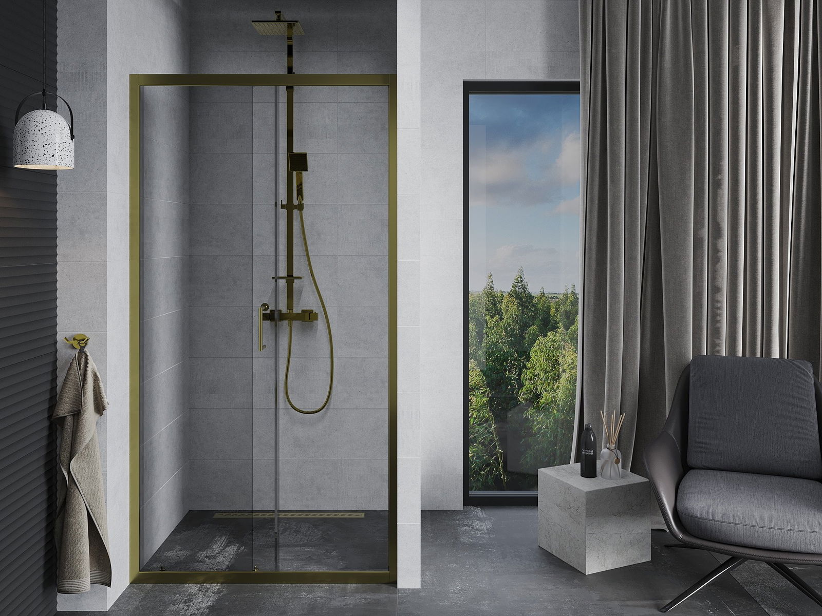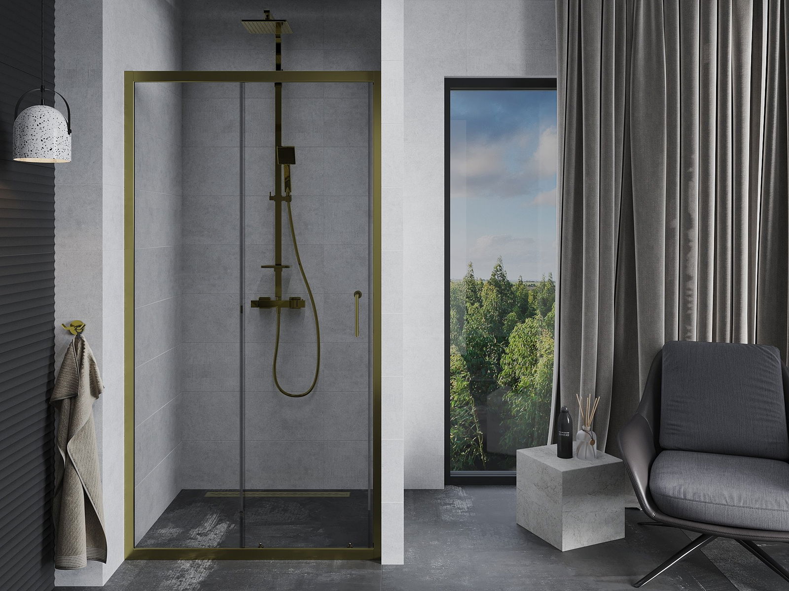 Poręczny i wygodny uchwyt został wykonany z trwałego i odpornego metalu. Modny kształt w połączeniu z wykończeniem dopasowanym do koloru profili nadaje całości nowoczesnego i stylowego wyglądu, podkreślając estetykę każdej łazienki.
