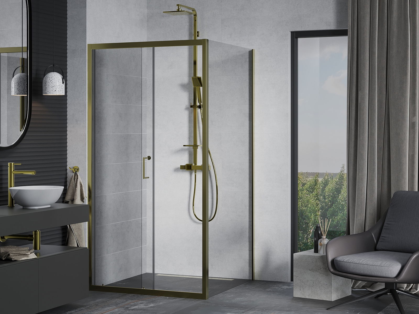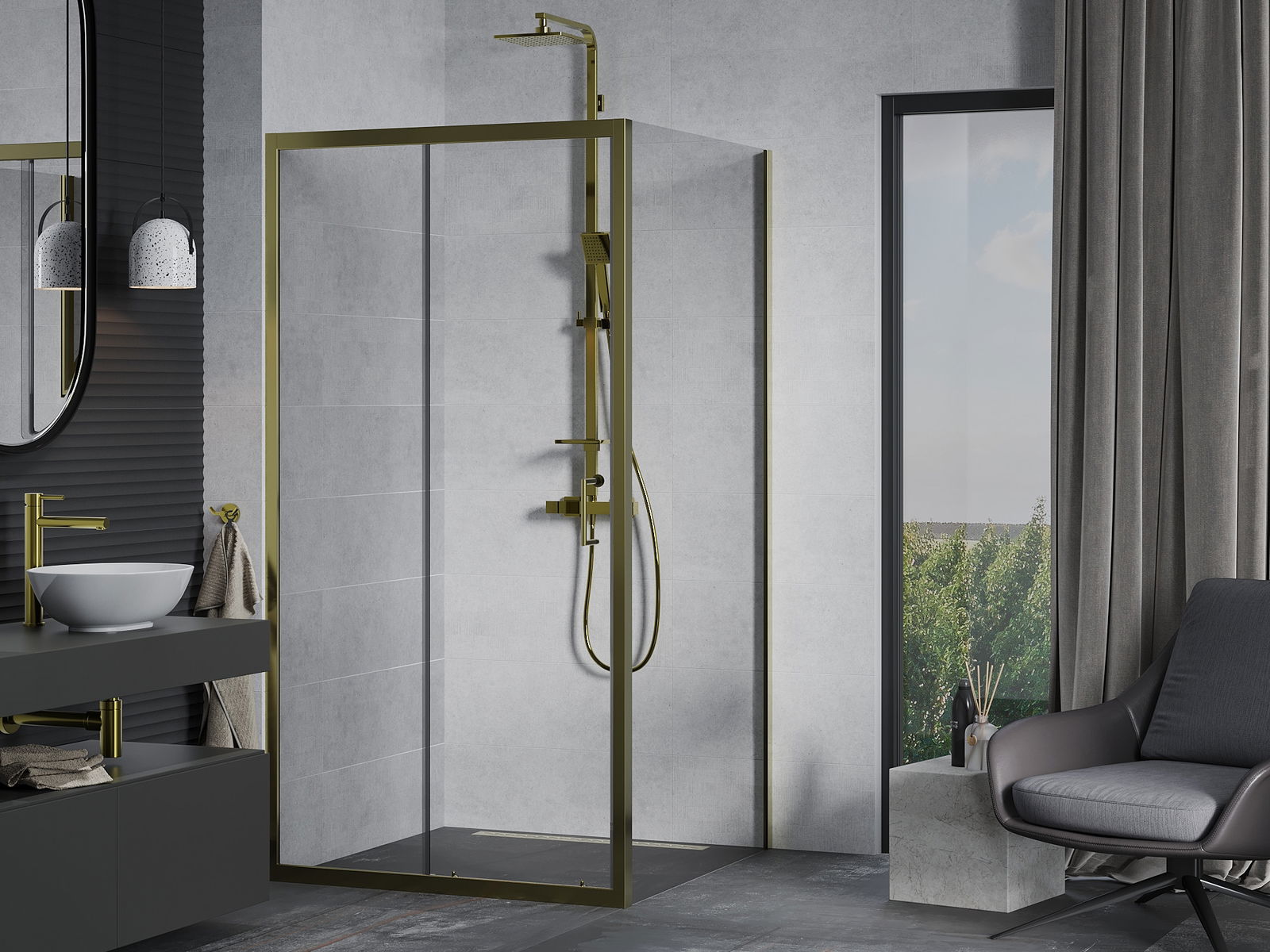 Poręczny i wygodny uchwyt został wykonany z trwałego i odpornego metalu. Modny kształt w połączeniu z wykończeniem dopasowanym do koloru profili nadaje całości nowoczesnego i stylowego wyglądu, podkreślając estetykę każdej łazienki.