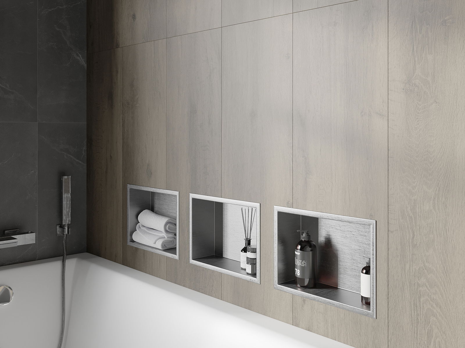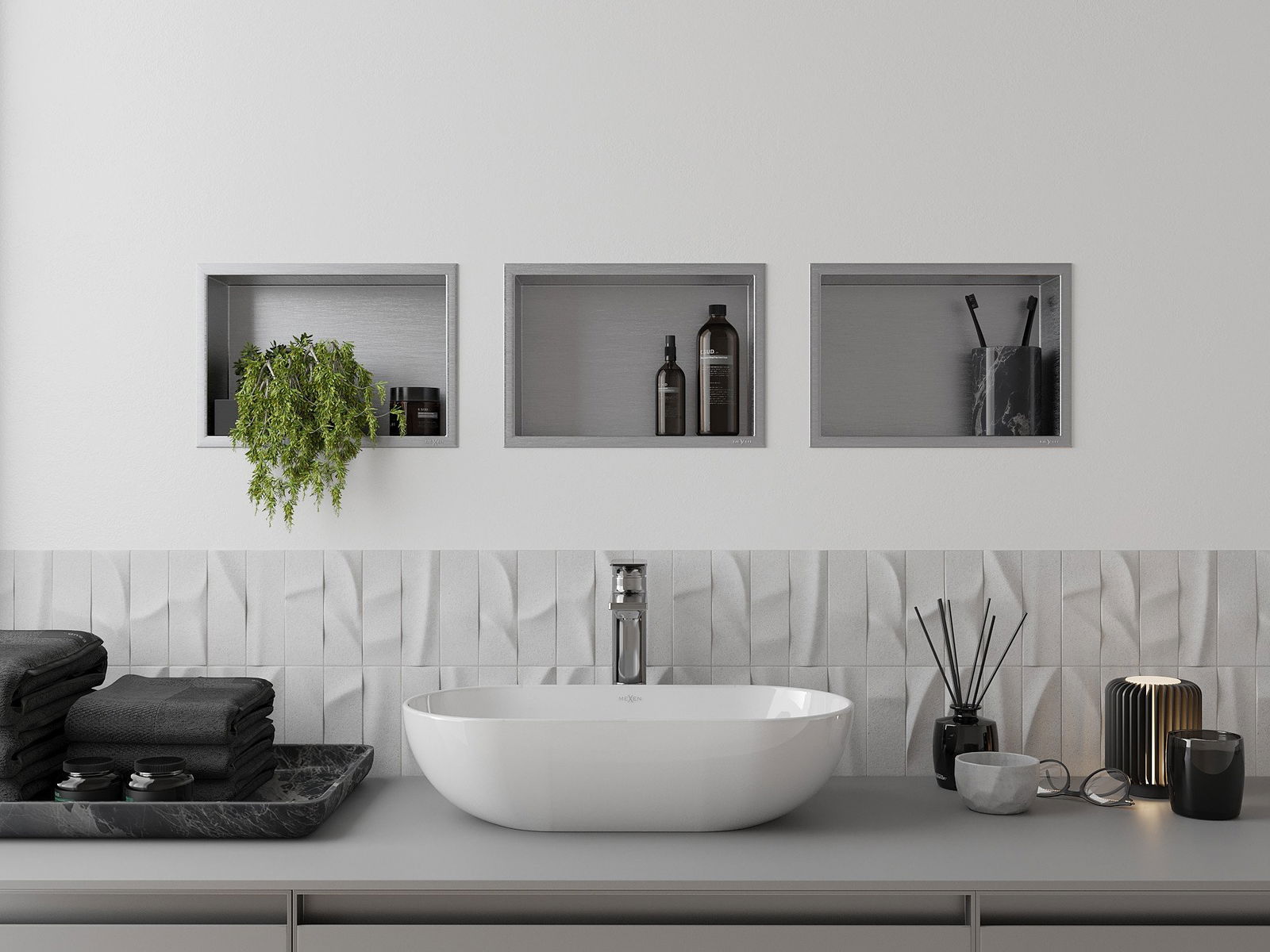 Możliwość montażu w ścianie lub w specjalnie przygotowanej zabudowie. Jest to niezwykle nowoczesne i funkcjonalne rozwiązanie, pozwalające zaoszczędzić przestrzeń oraz dopasować produkt do estetyki wnętrza i stworzyć spójną kompozycję.