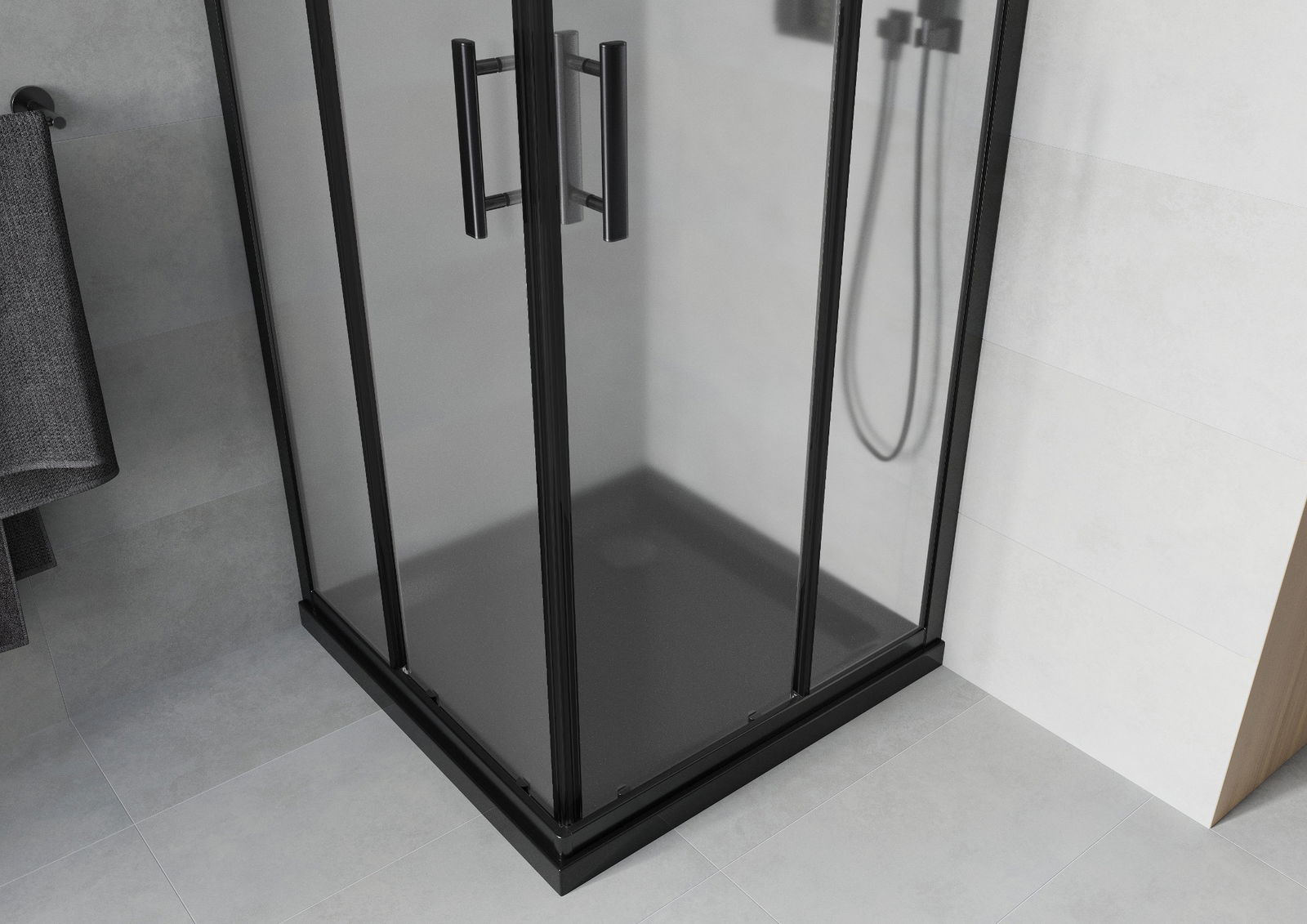 Mexen Rio kabina prysznicowa kwadratowa 70 x 70 cm, szron, czarna + brodzik Flat, czarny - 860-070-070-70-30-4070B