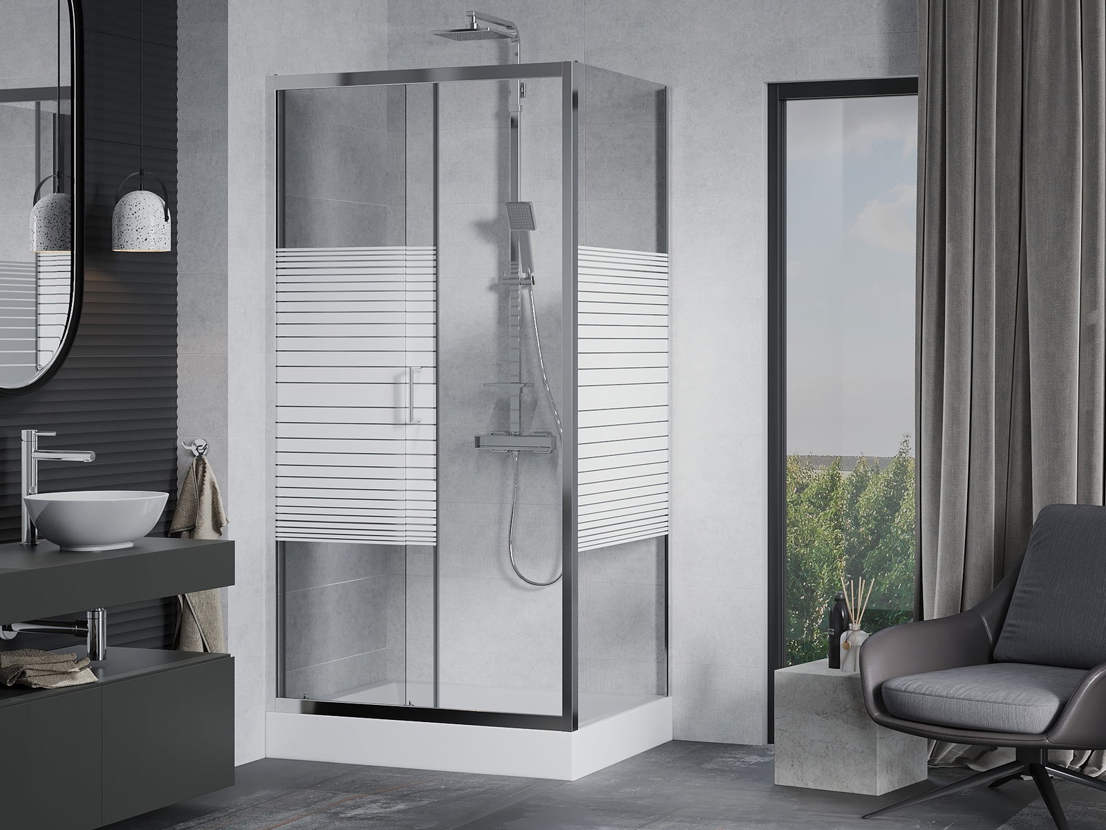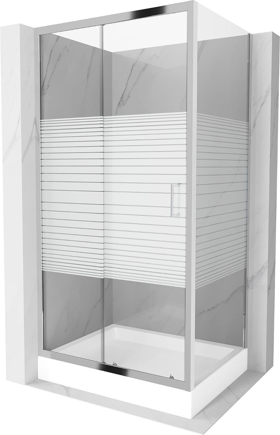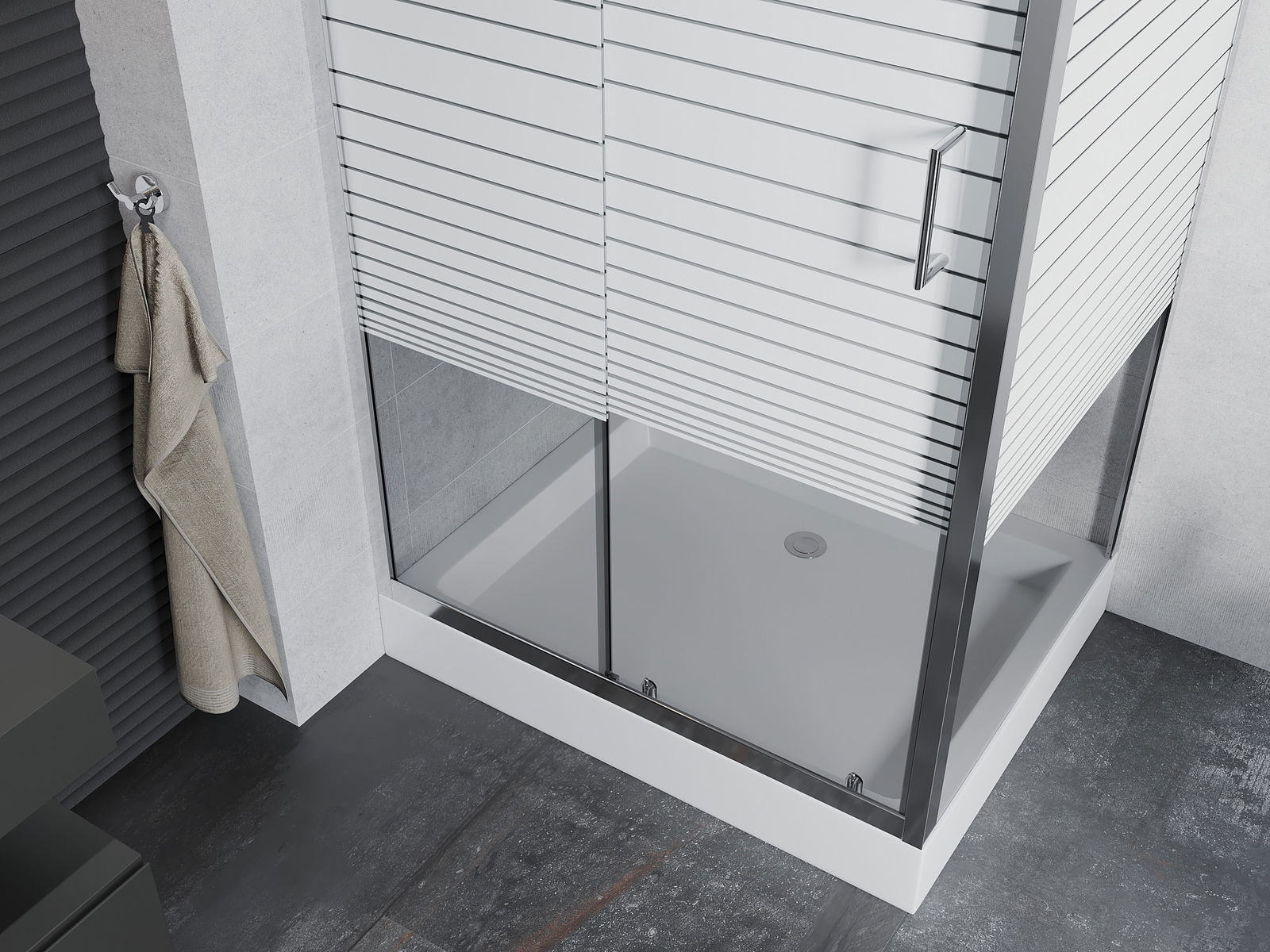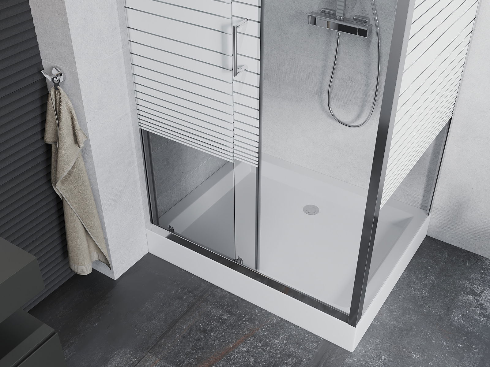 Mexen Apia kabina prysznicowa rozsuwana 120 x 80 cm, białe pasy, chrom + brodzik Rio - 840-120-080-01-20-4510