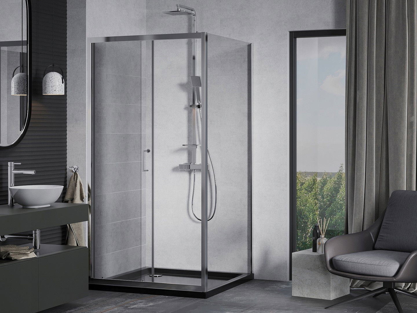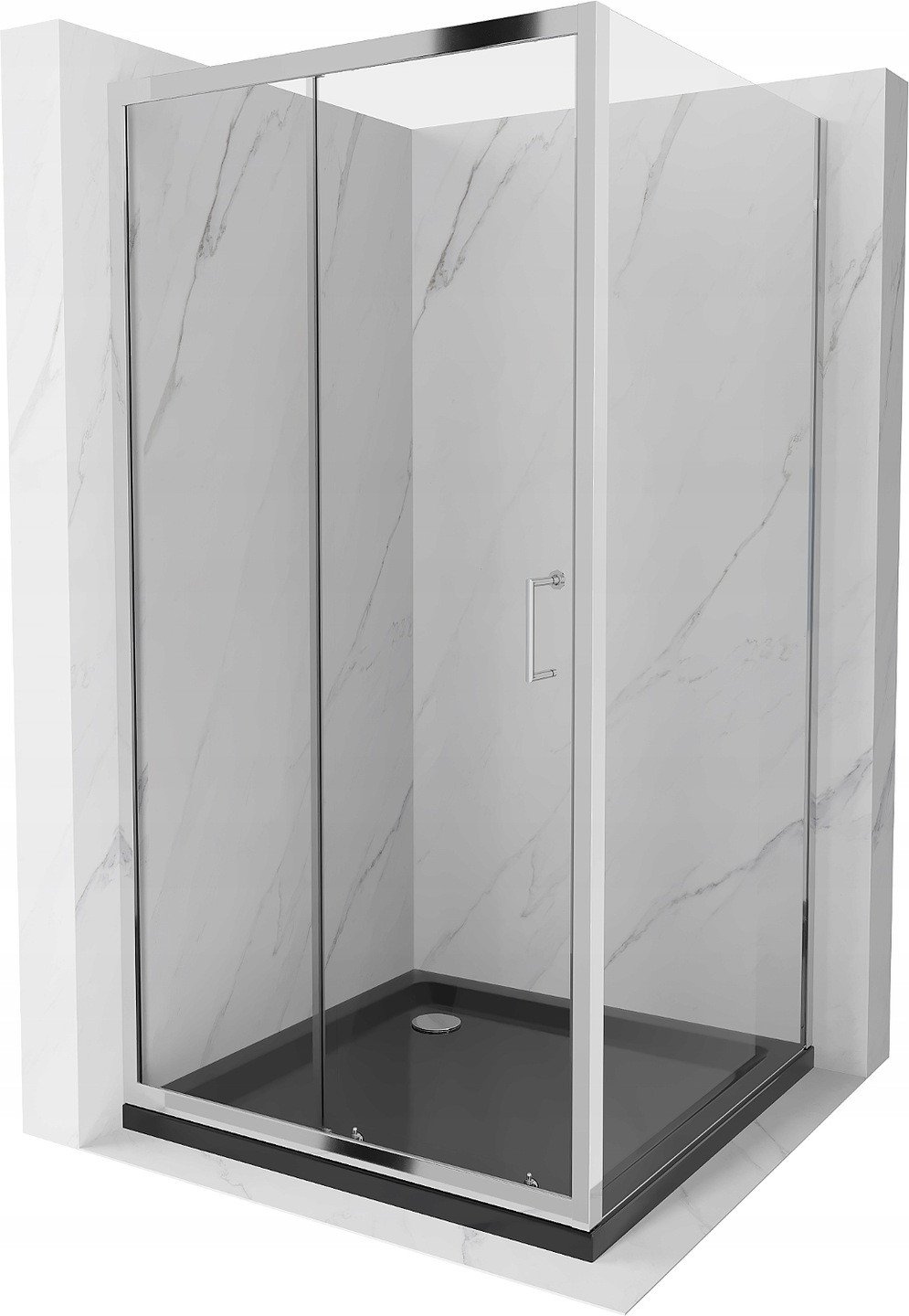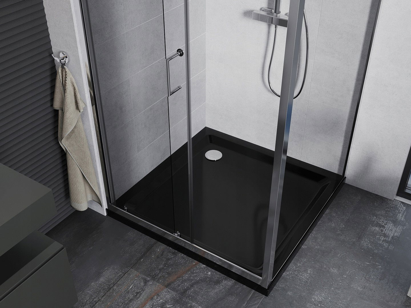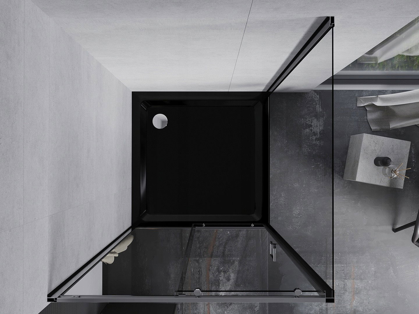 Mexen Apia kabina prysznicowa rozsuwana 90 x 90 cm, transparent, chrom + brodzik Flat, czarny - 840-090-090-01-00-4070