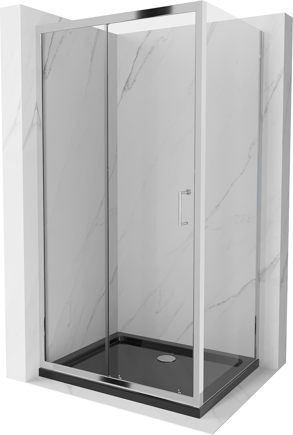 Dzięki zastosowaniu uniwersalnego systemu mocowania, drzwi prysznicowe mogą zostać zamontowane z prawej lub z lewej strony, zależnie od potrzeb. Dzięki temu możesz z łatwością zaprojektować prysznic dopasowany do przestrzeni łazienki.