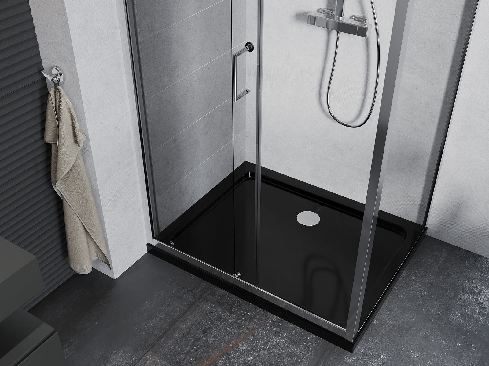 Mexen Apia kabina prysznicowa rozsuwana 110 x 90 cm, transparent, chrom + brodzik Flat, czarny - 840-110-090-01-00-4070