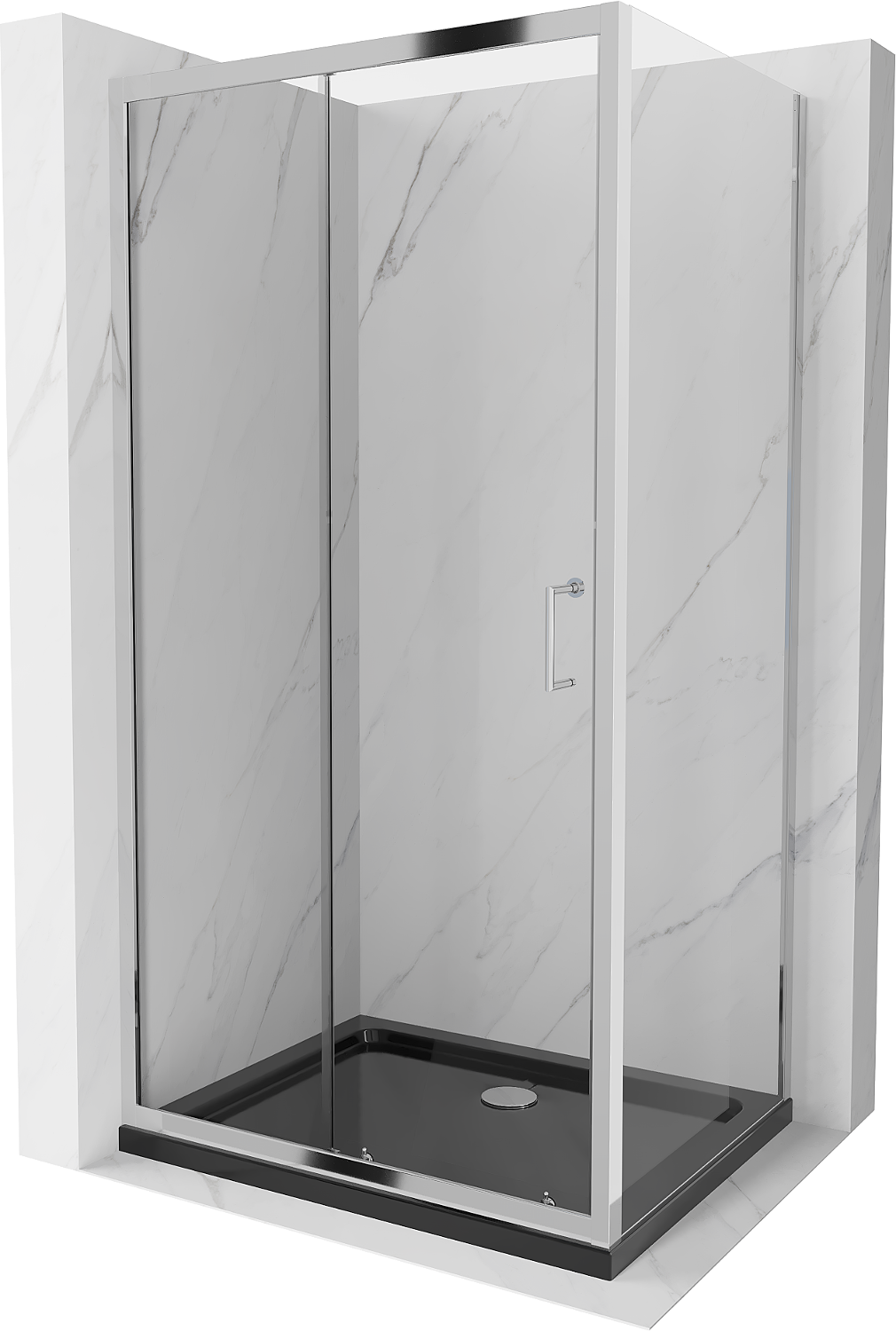 Mexen Apia kabina prysznicowa rozsuwana 120 x 70 cm, transparent, chrom + brodzik Flat, czarny - 840-120-070-01-00-4070