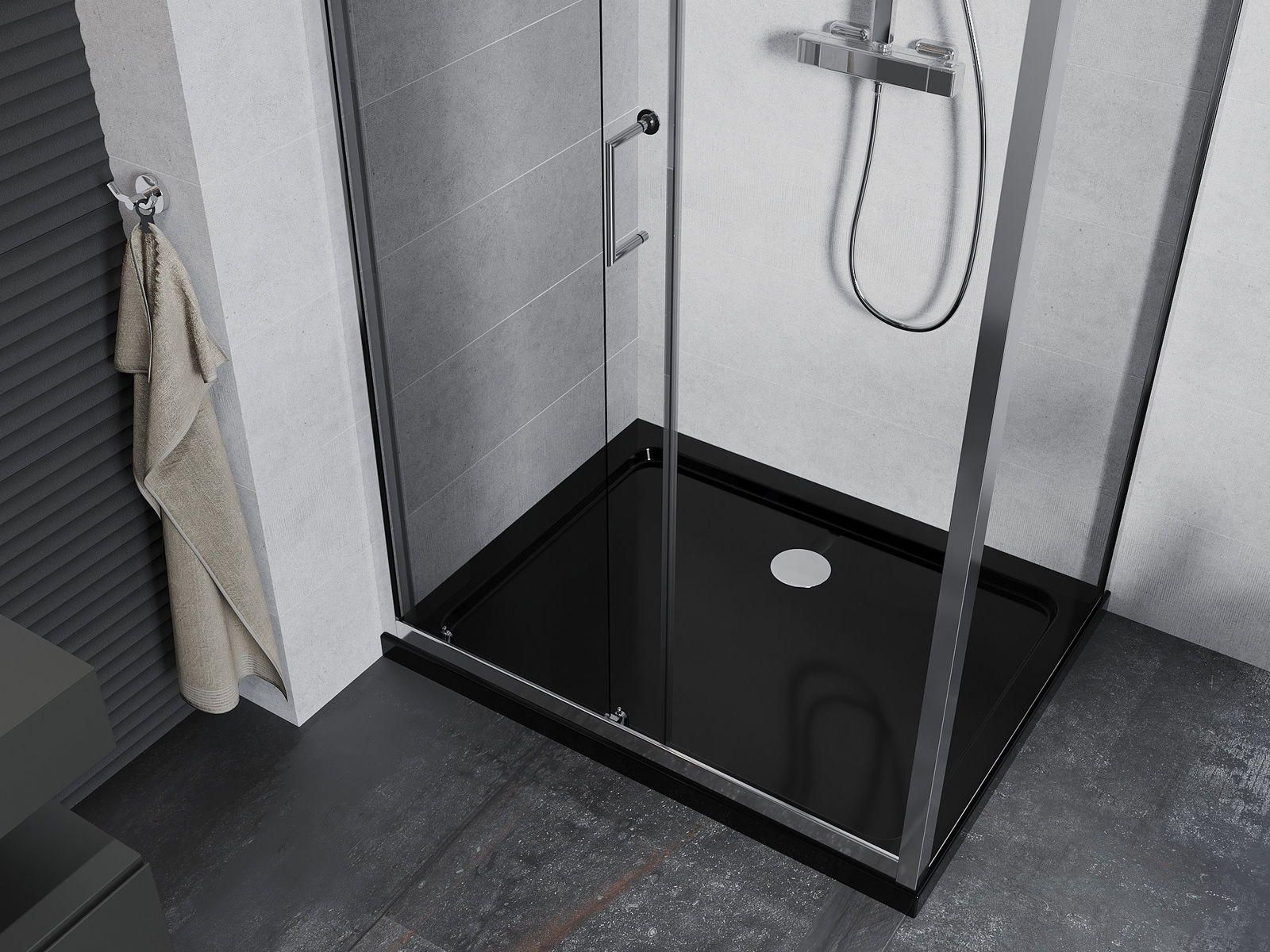 Mexen Apia kabina prysznicowa rozsuwana 140 x 70 cm, transparent, chrom + brodzik Flat, czarny - 840-140-070-01-00-4070