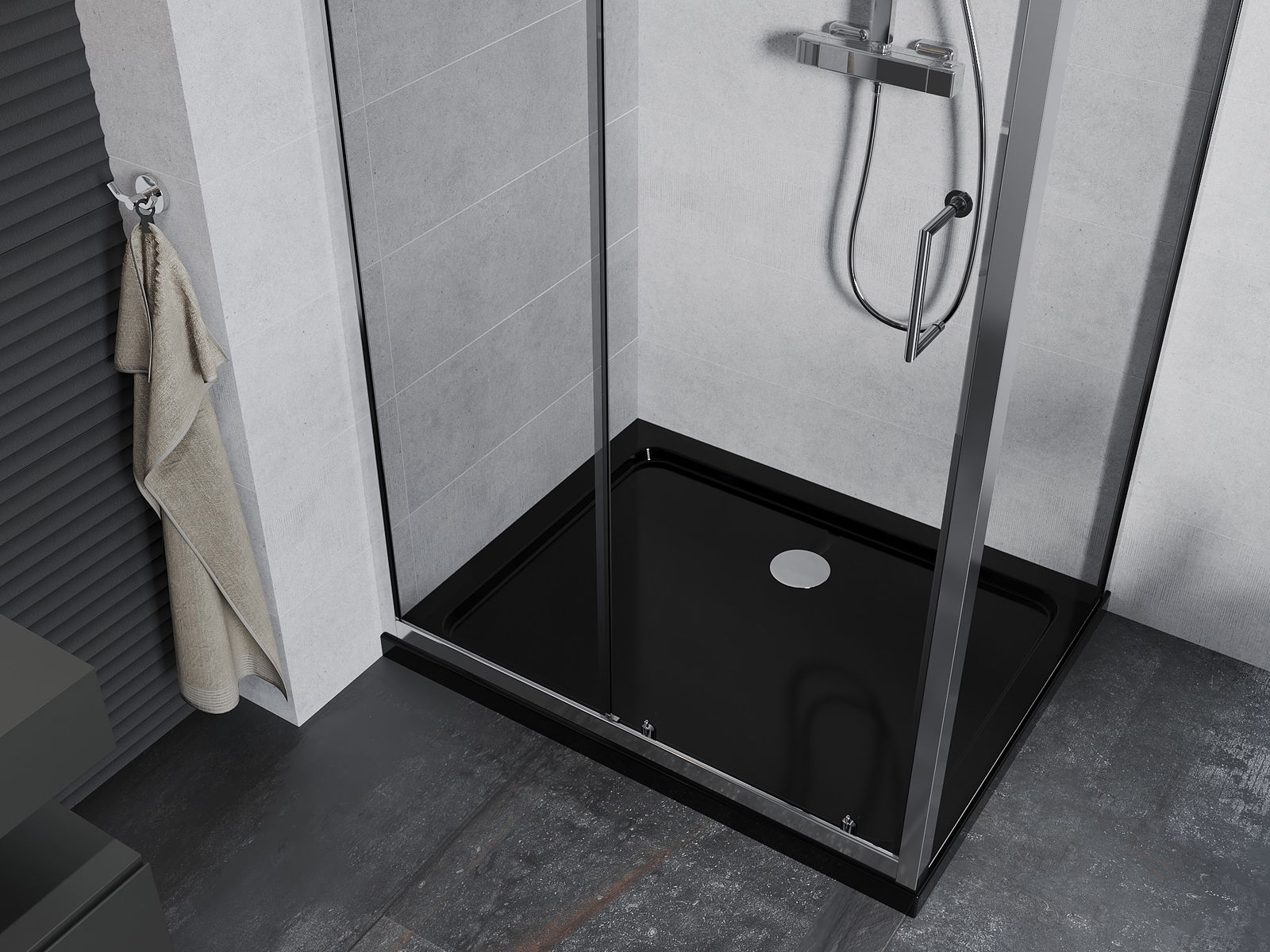 Mexen Apia kabina prysznicowa rozsuwana 140 x 80 cm, transparent, chrom + brodzik Flat, czarny - 840-140-080-01-00-4070