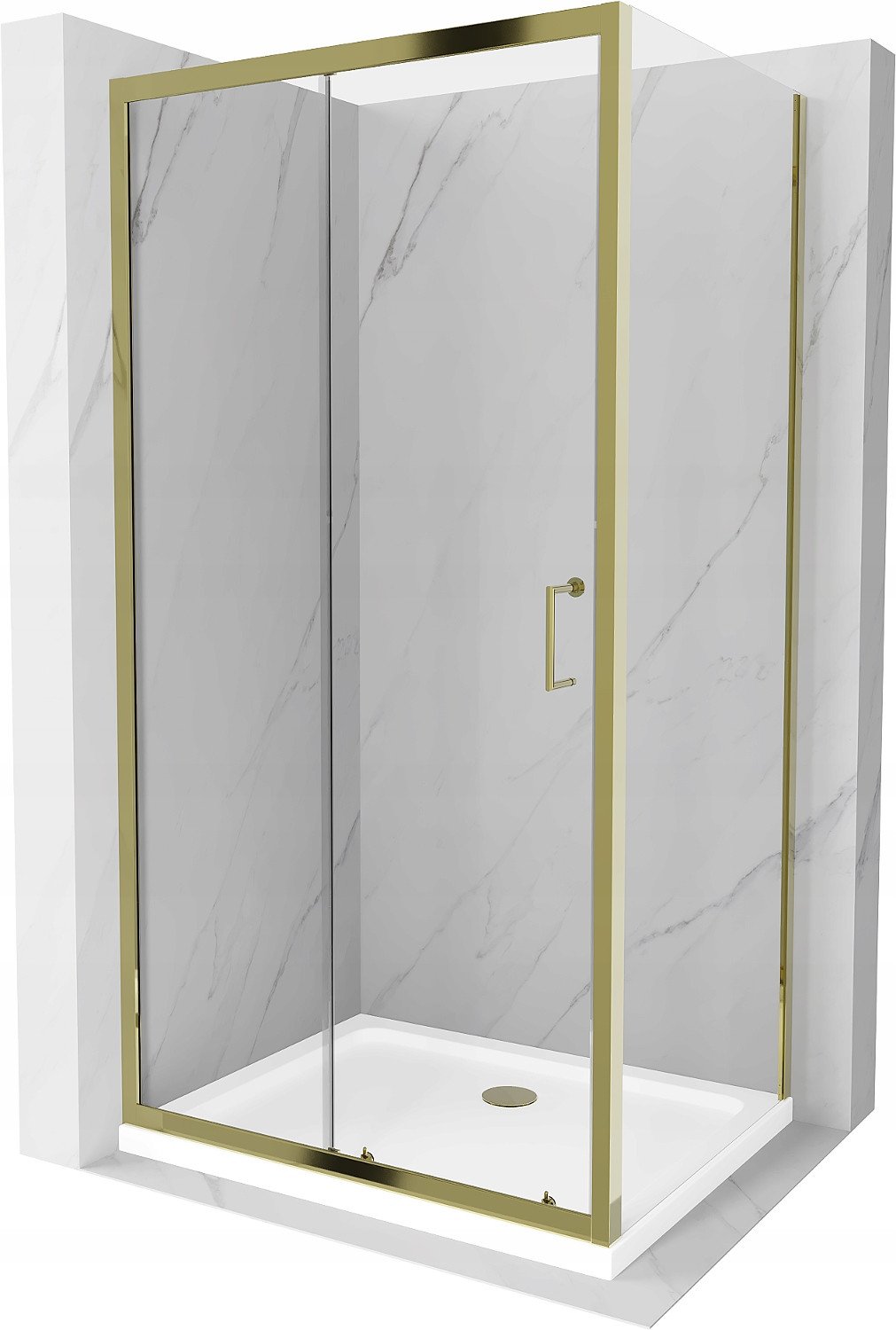 Mexen Apia kabina prysznicowa rozsuwana 140 x 80 cm, transparent, złota + brodzik Flat, biały- 840-140-080-50-00-4010G