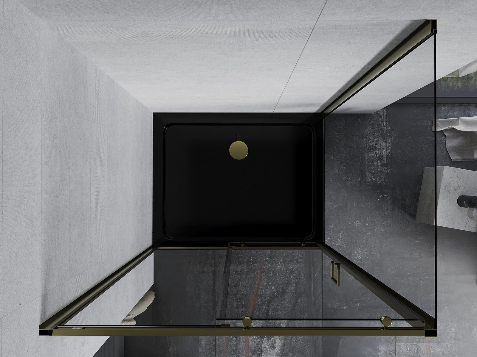 Mexen Apia kabina prysznicowa rozsuwana 90 x 70 cm, transparent, złota + brodzik Flat, czarny - 840-090-070-50-00-4070G