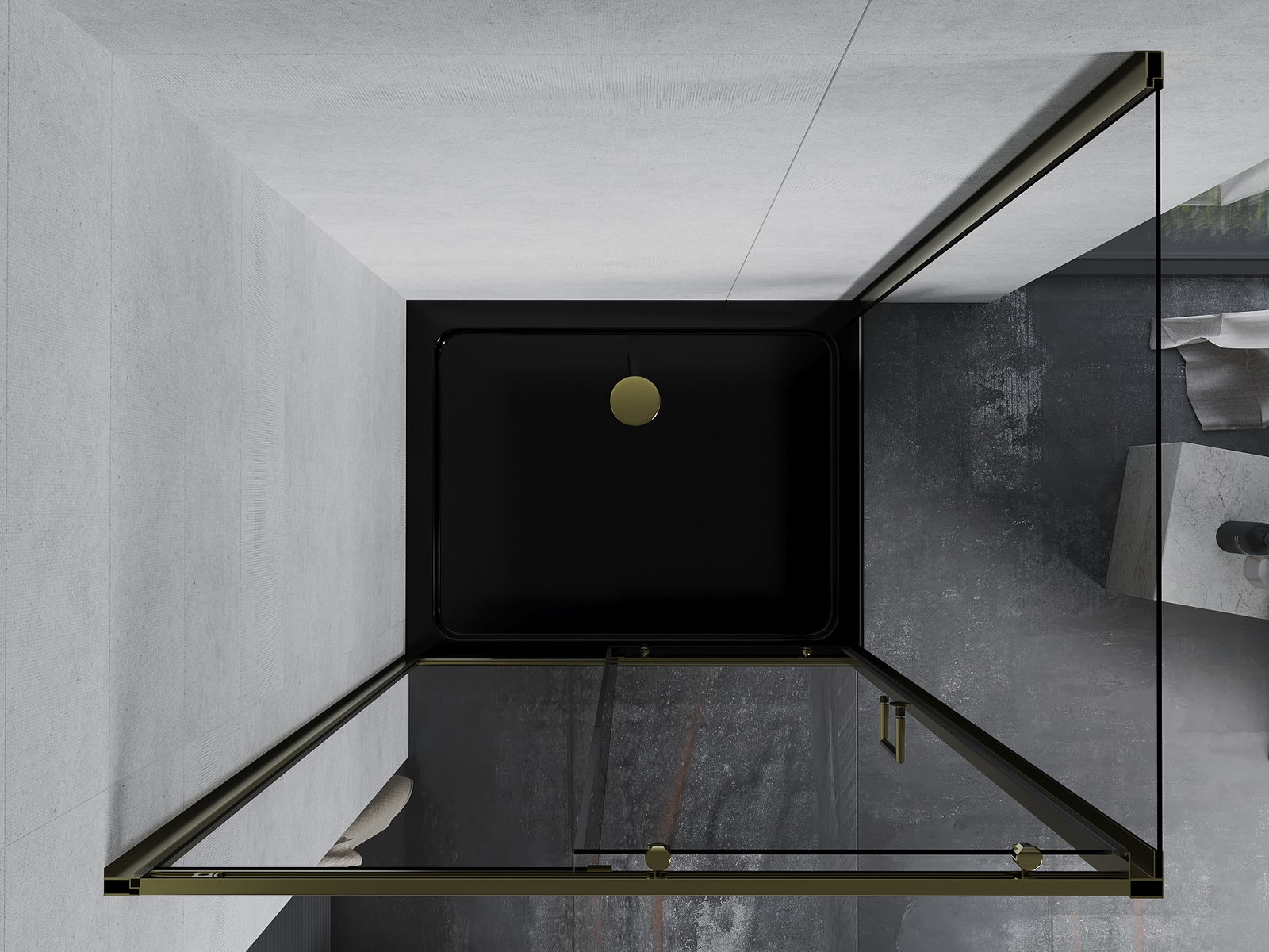 Mexen Apia kabina prysznicowa rozsuwana 100 x 80 cm, transparent, złota + brodzik Flat, czarny - 840-100-080-50-00-4070G