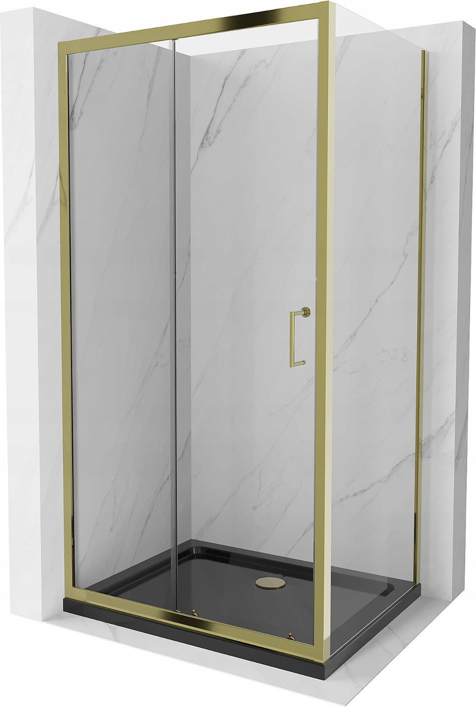 Mexen Apia kabina prysznicowa rozsuwana 100 x 90 cm, transparent, złota + brodzik Flat, czarny - 840-100-090-50-00-4070G
