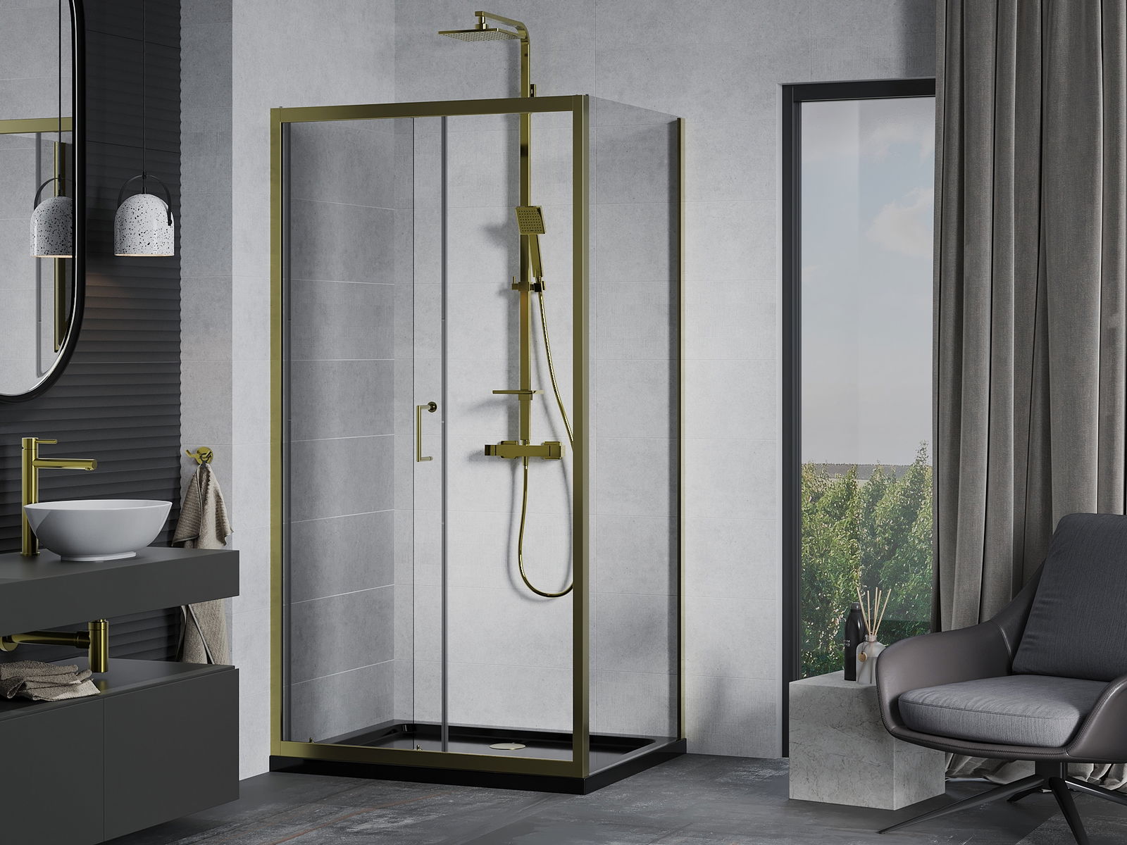 Poręczny i wygodny uchwyt został wykonany z trwałego i odpornego metalu. Modny kształt w połączeniu z wykończeniem dopasowanym do koloru profili nadaje całości nowoczesnego i stylowego wyglądu, podkreślając estetykę każdej łazienki.