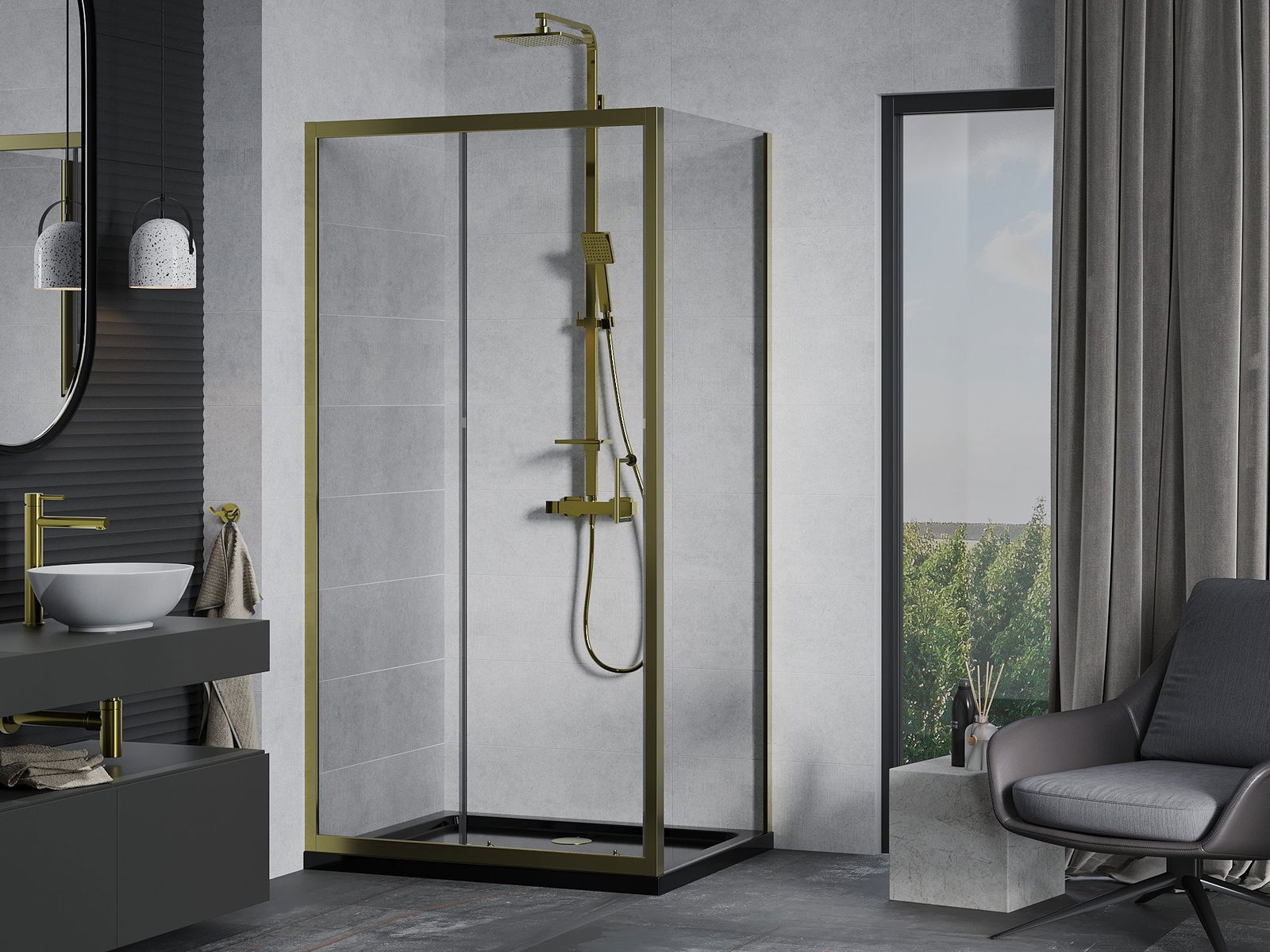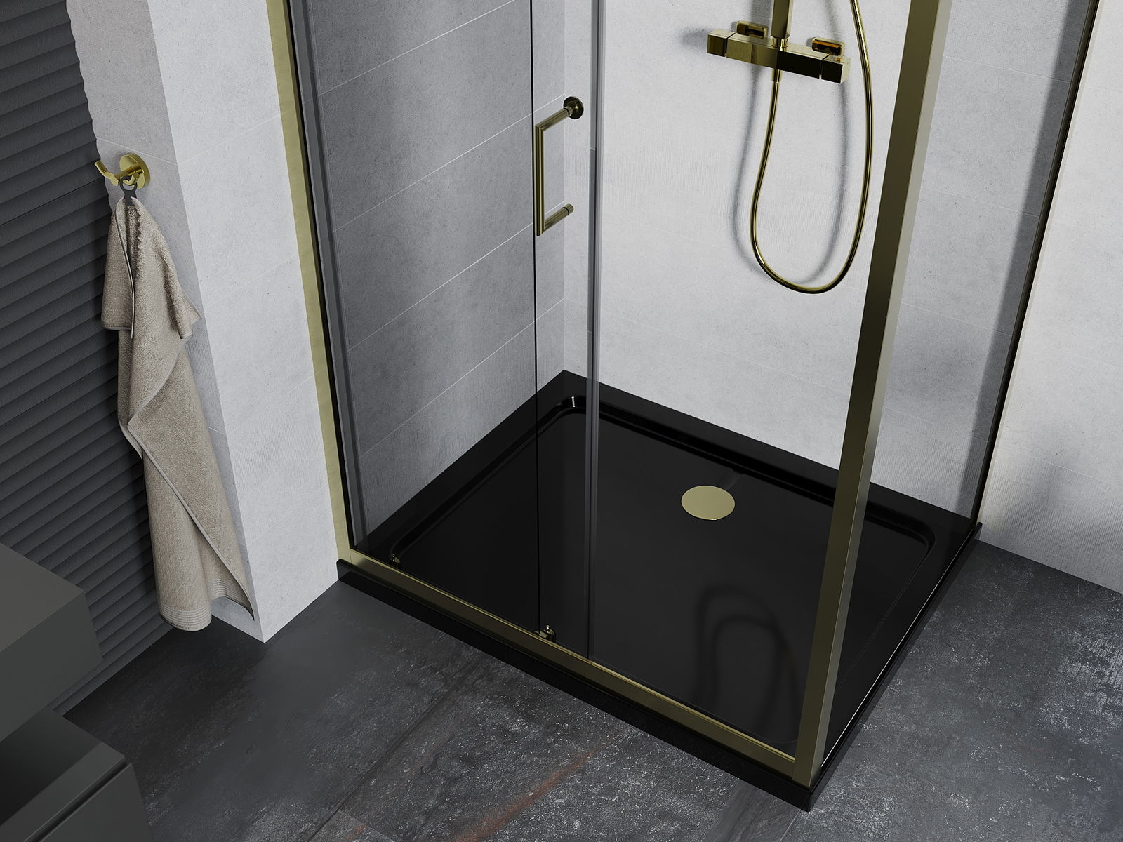 Poręczny i wygodny uchwyt został wykonany z trwałego i odpornego metalu. Modny kształt w połączeniu z wykończeniem dopasowanym do koloru profili nadaje całości nowoczesnego i stylowego wyglądu, podkreślając estetykę każdej łazienki.