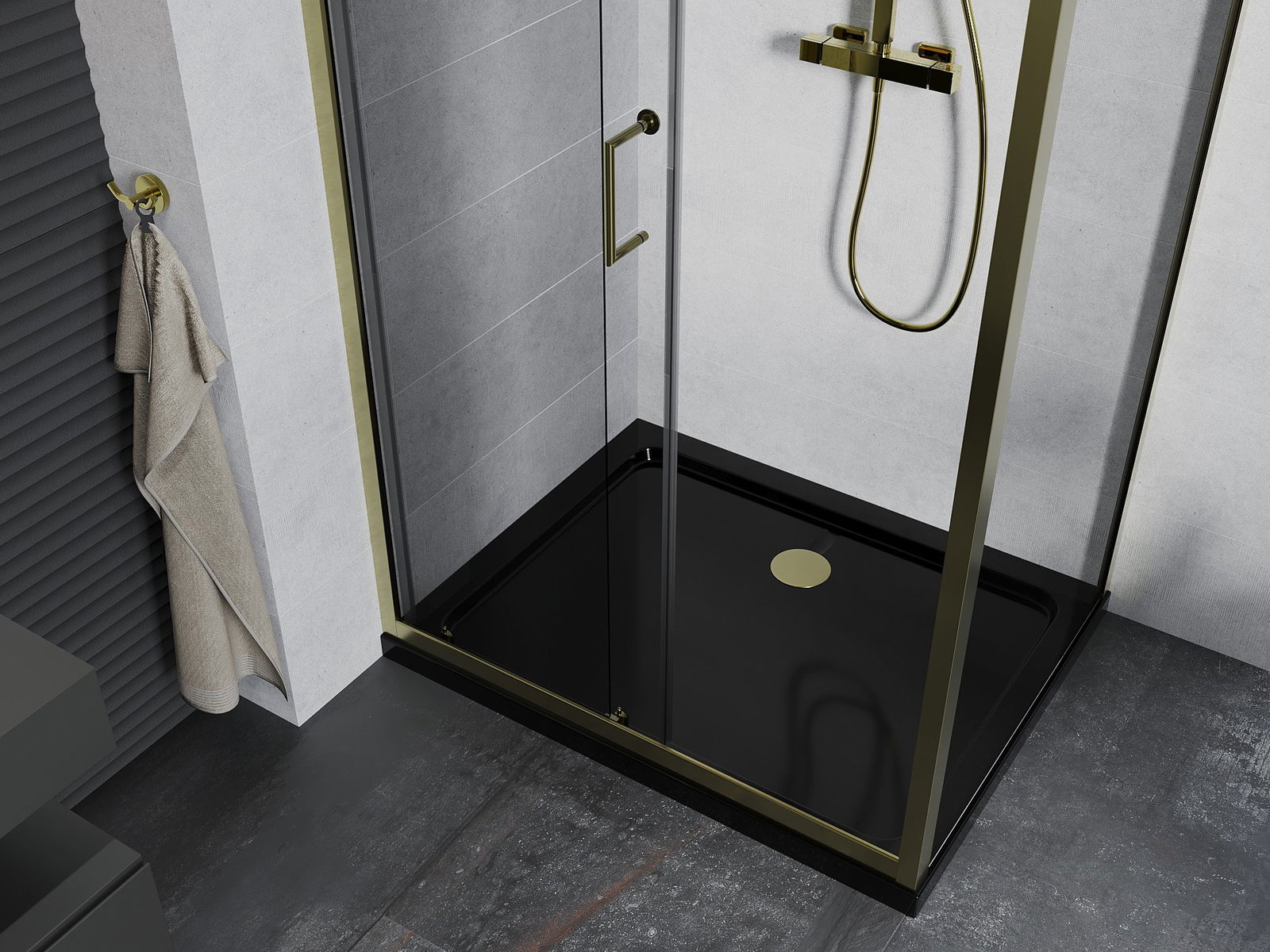 Mexen Apia kabina prysznicowa rozsuwana 140 x 100 cm, transparent, złota + brodzik Flat, czarny - 840-140-100-50-00-4070G