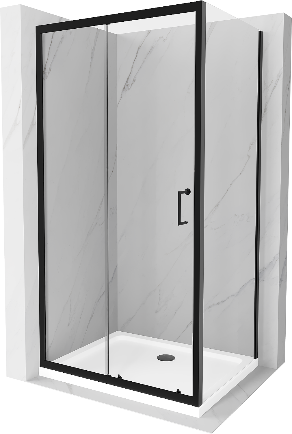 Mexen Apia kabina prysznicowa rozsuwana 90 x 80 cm, transparent, czarna + brodzik Flat, biały- 840-090-080-70-00-4010B