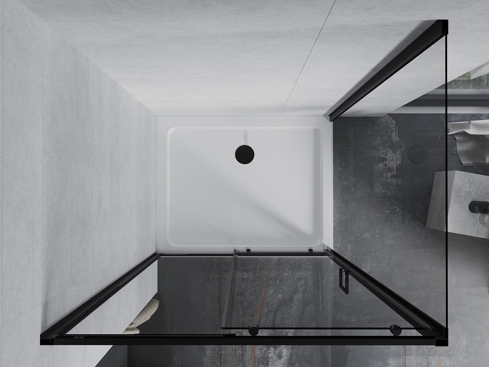 Mexen Apia kabina prysznicowa rozsuwana 140 x 80 cm, transparent, czarna + brodzik Flat, biały- 840-140-080-70-00-4010B