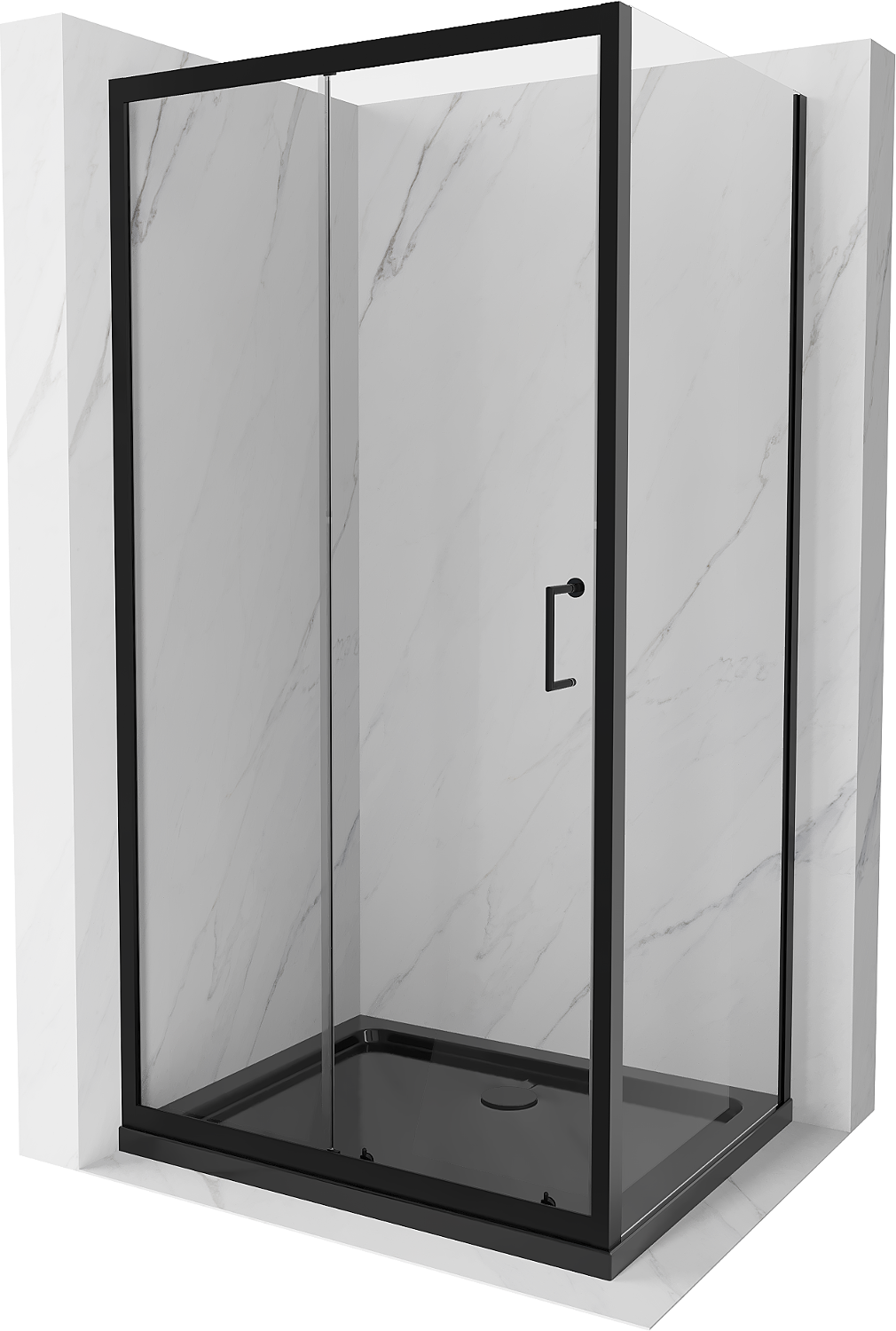 Mexen Apia kabina prysznicowa rozsuwana 110 x 90 cm, transparent, czarna + brodzik Flat, czarny - 840-110-090-70-00-4070B