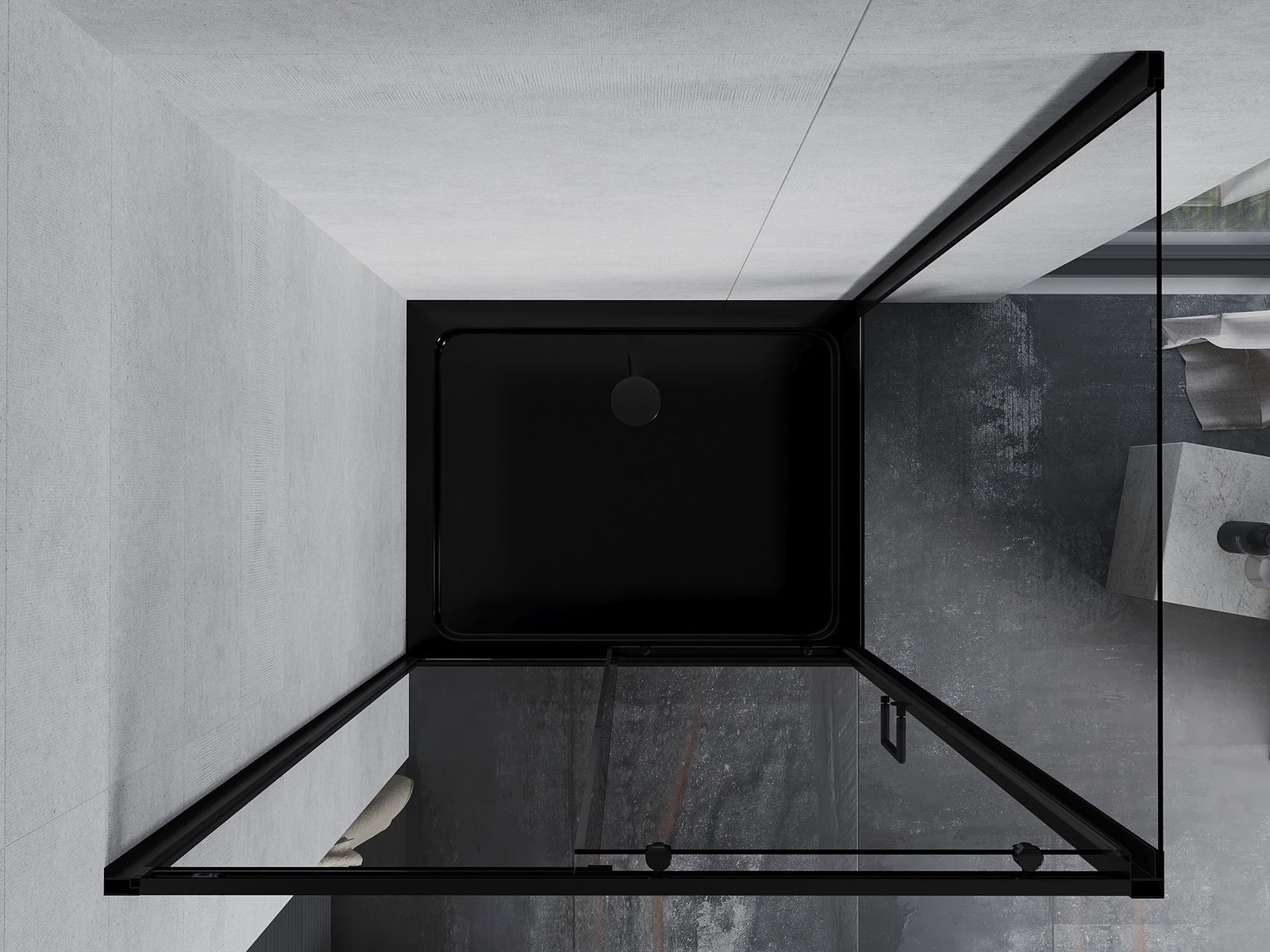 Mexen Apia kabina prysznicowa rozsuwana 140 x 80 cm, transparent, czarna + brodzik Flat, czarny - 840-140-080-70-00-4070B