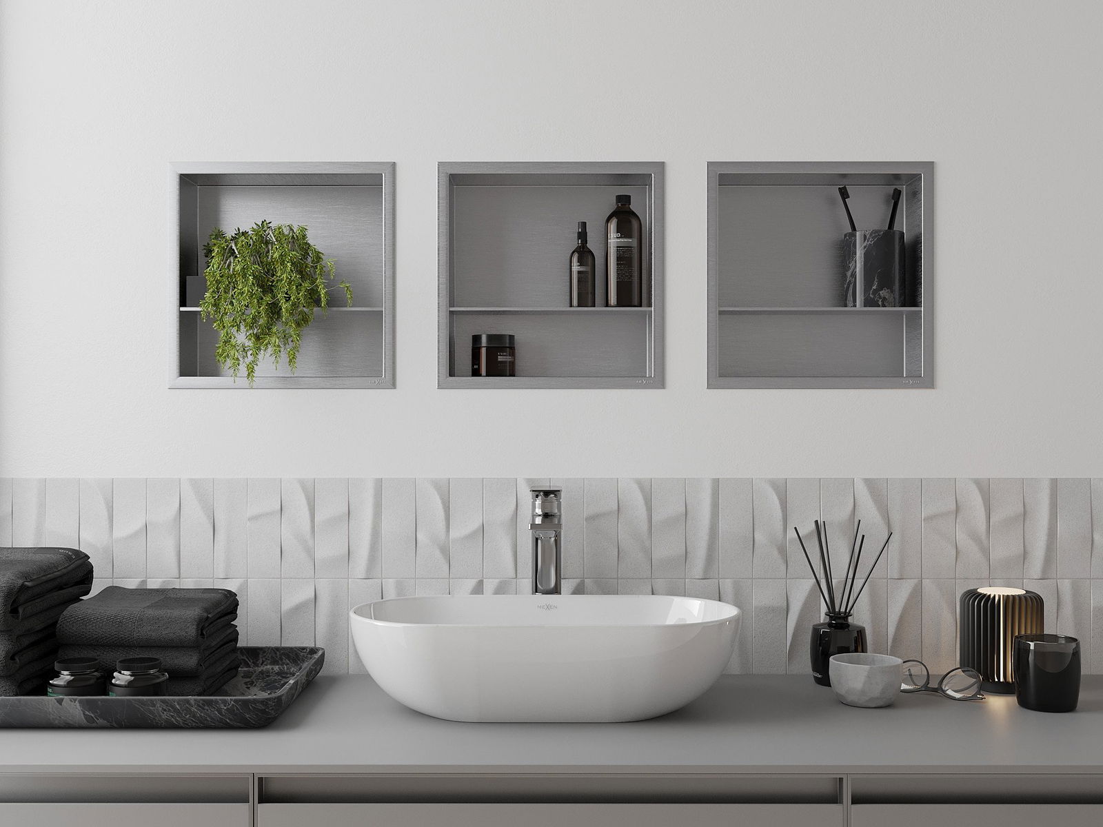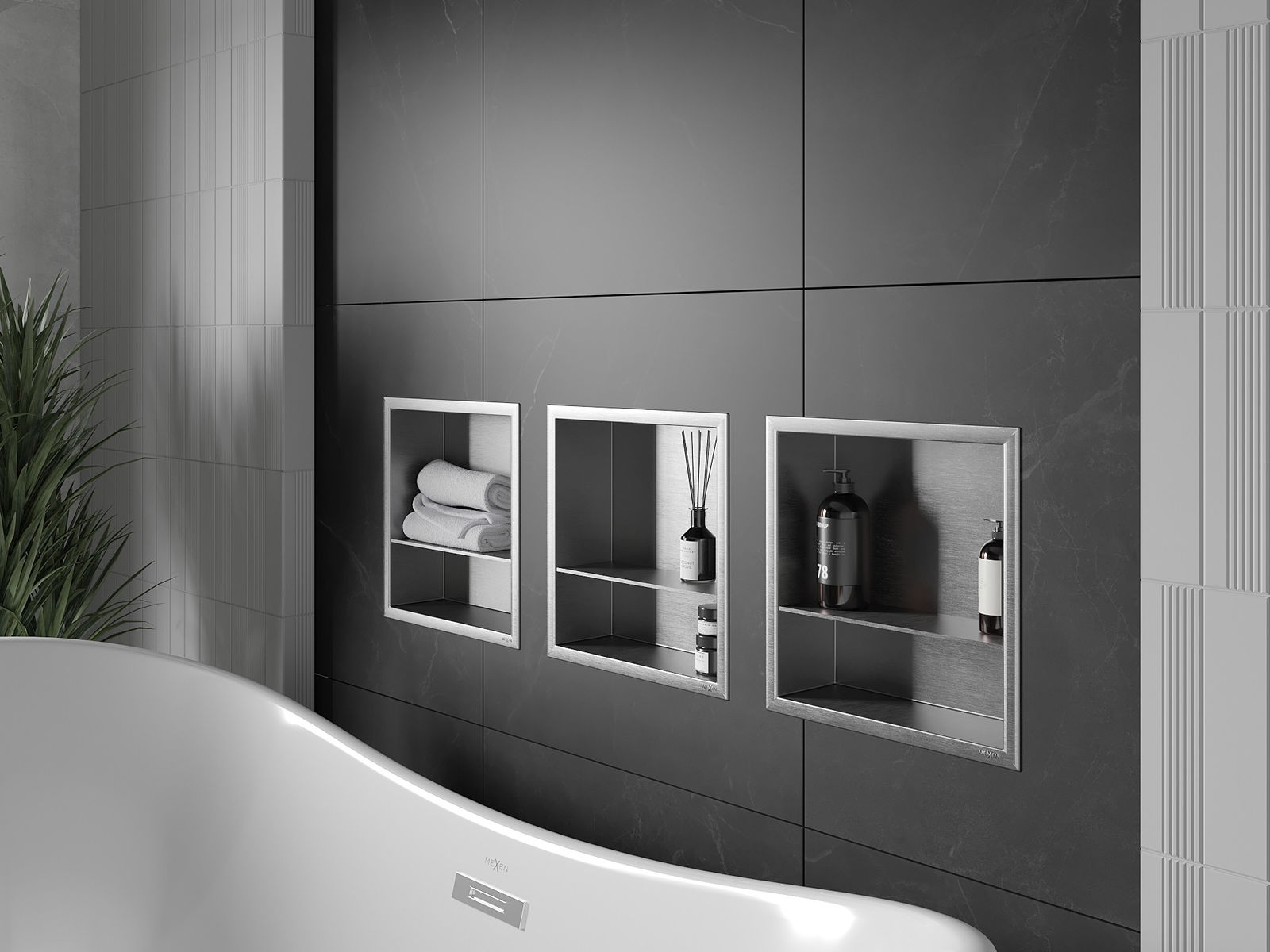 Możliwość montażu w ścianie lub w specjalnie przygotowanej zabudowie. Jest to niezwykle nowoczesne i funkcjonalne rozwiązanie, pozwalające zaoszczędzić przestrzeń oraz dopasować produkt do estetyki wnętrza i stworzyć spójną kompozycję.