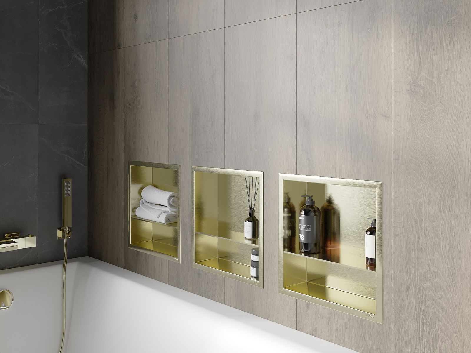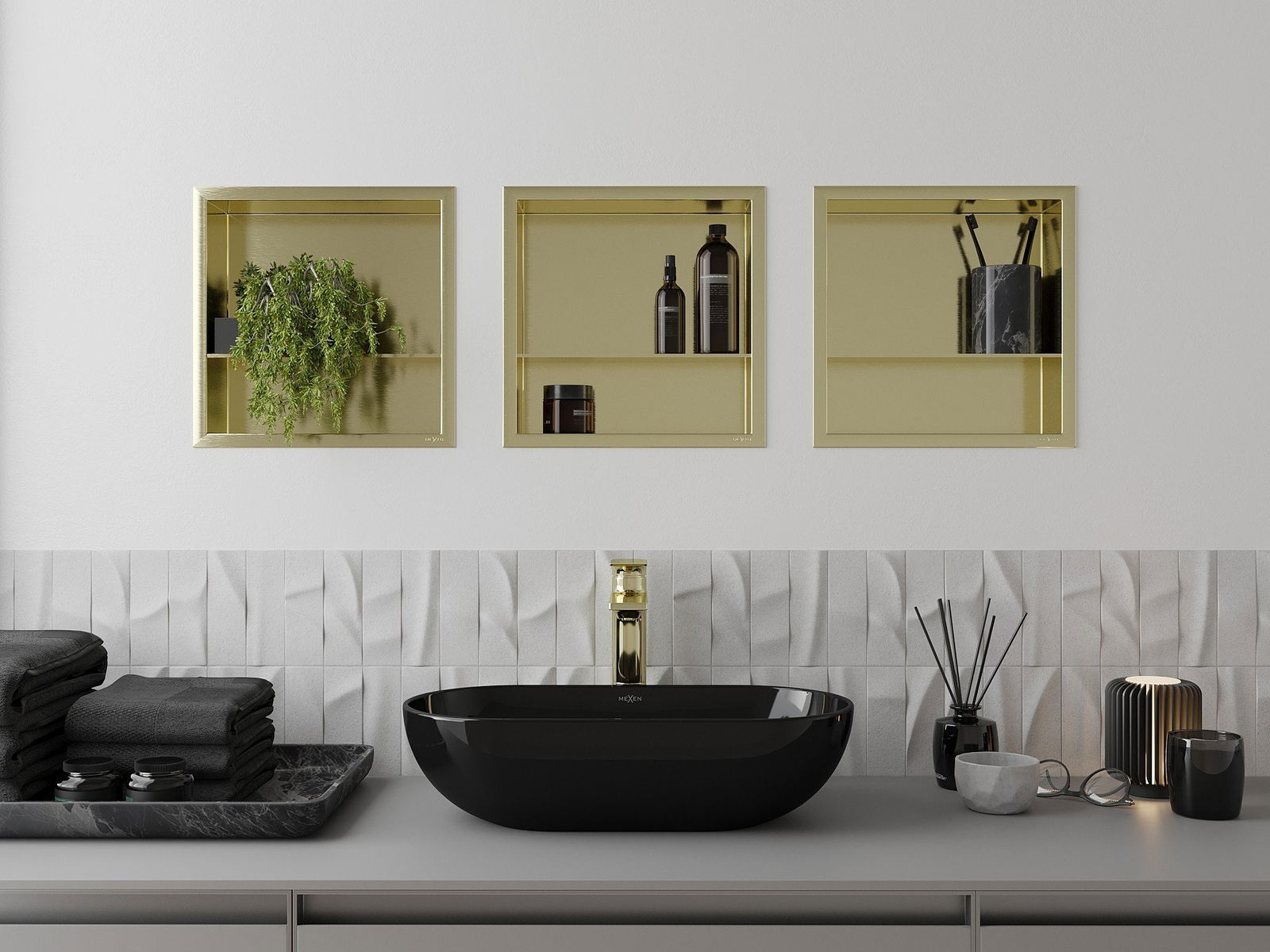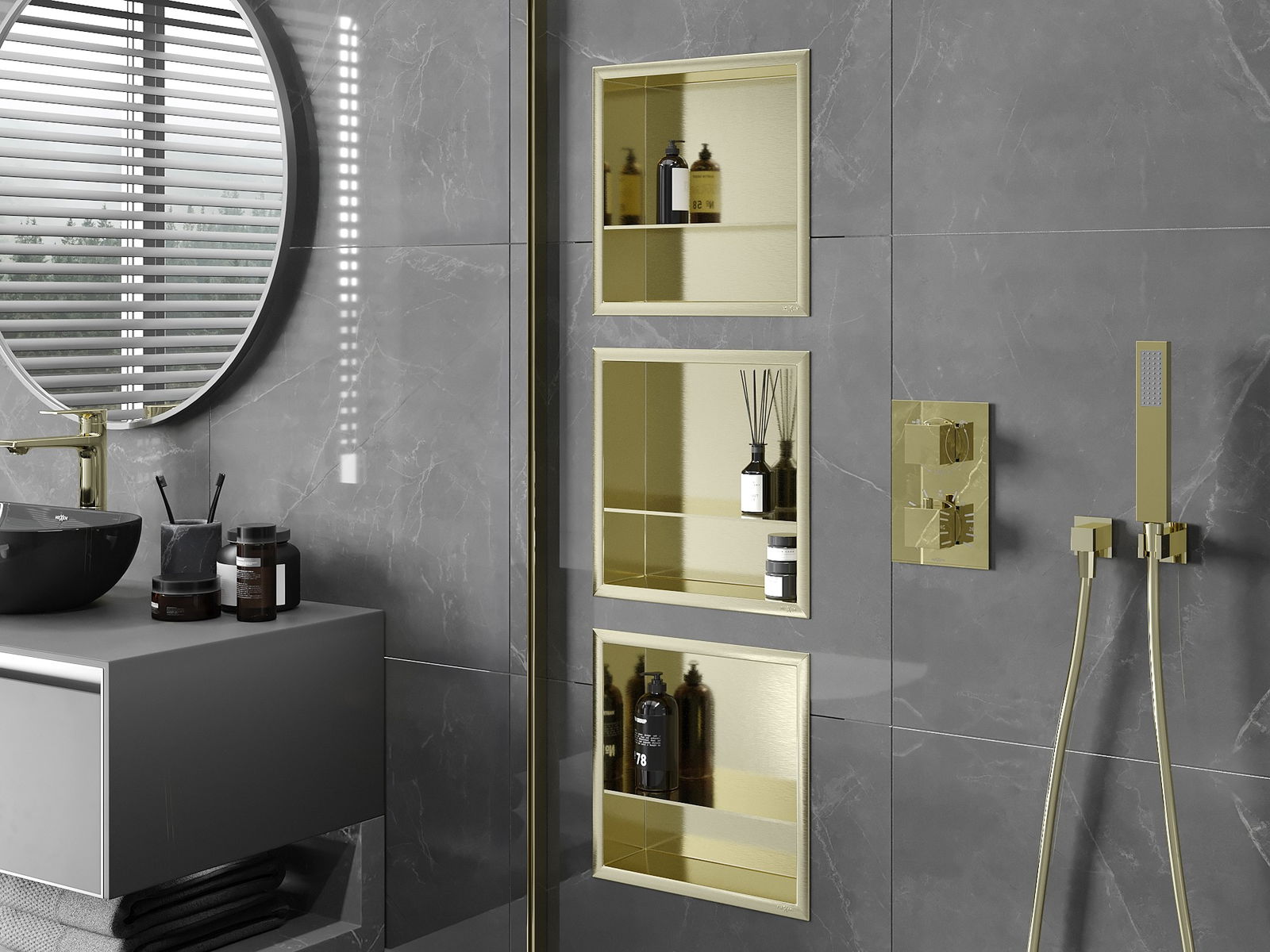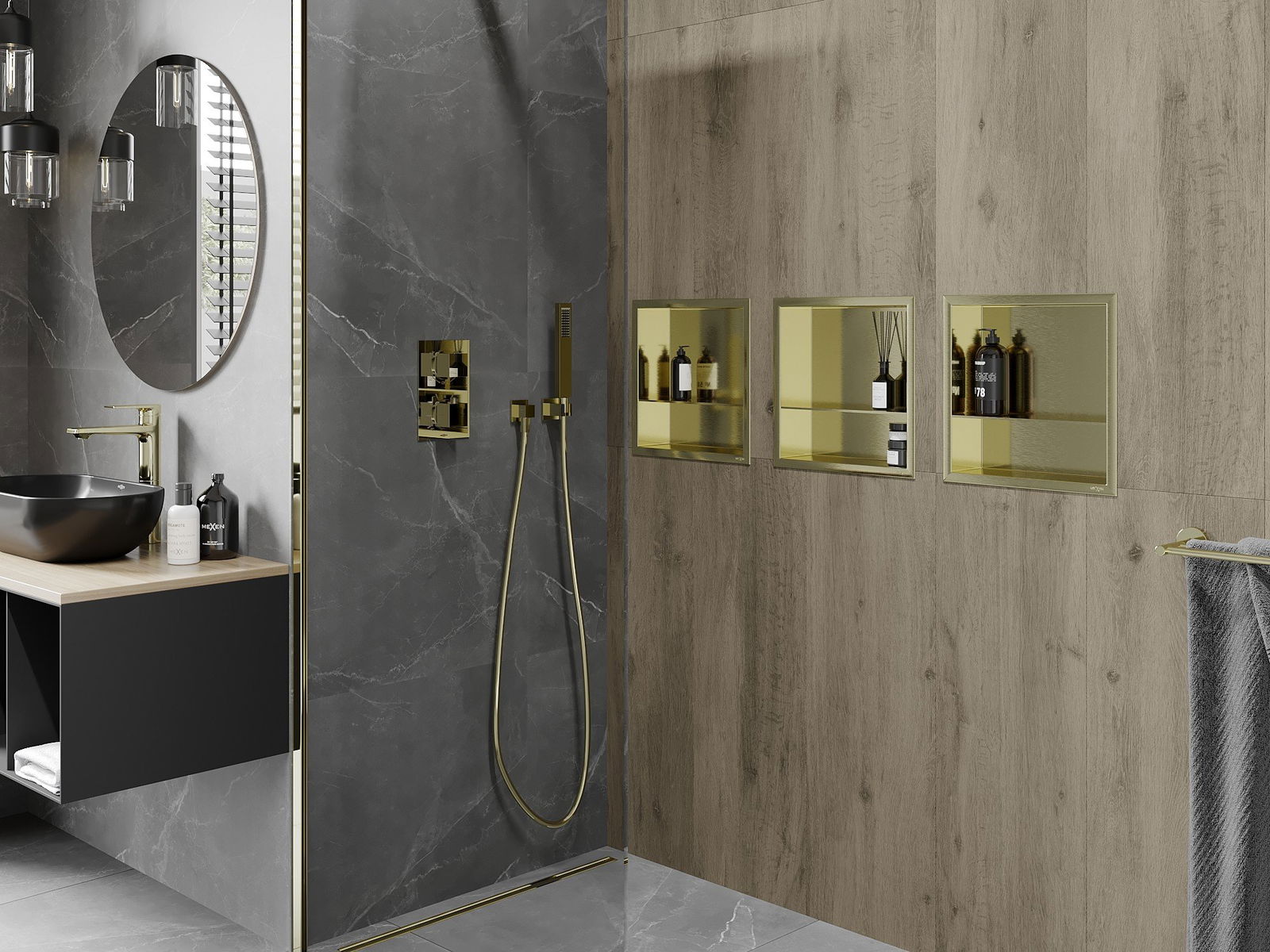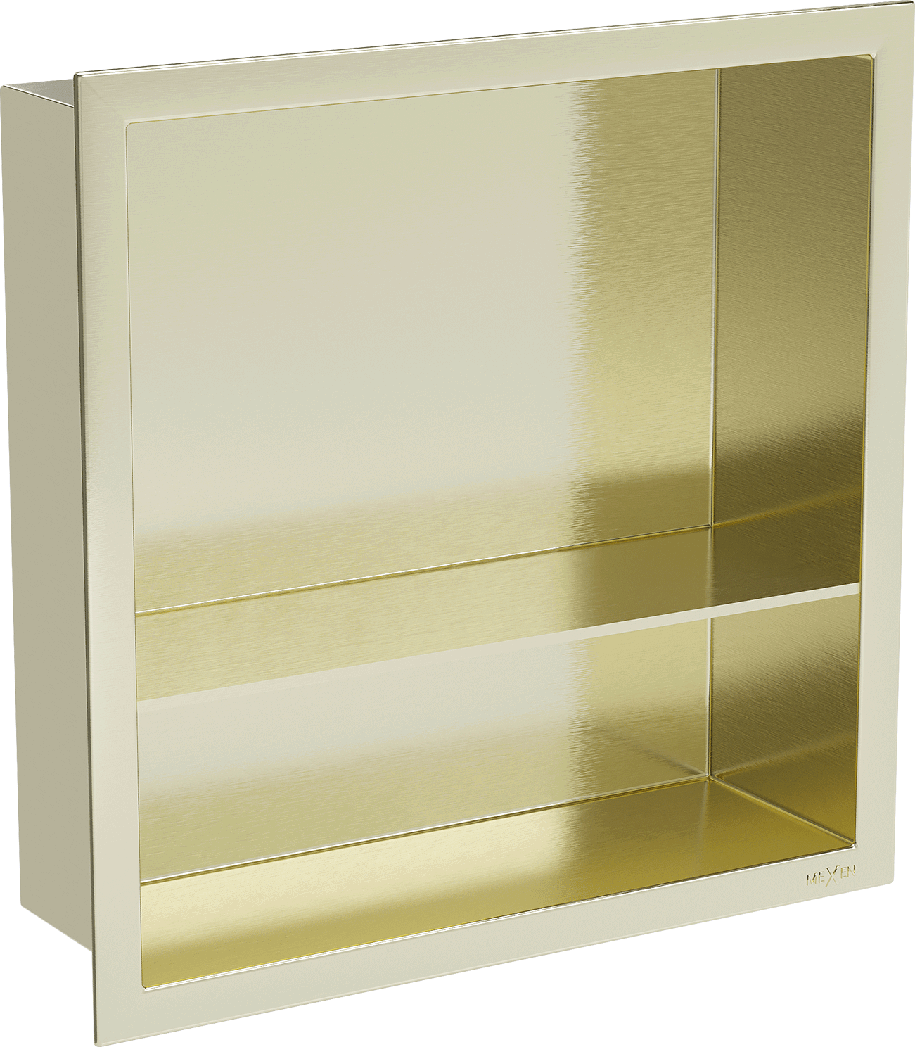 Mexen X-Wall-R półka wnękowa z kołnierzem i półką 30 x 30 cm, złota szczotkowana - 1950303010S