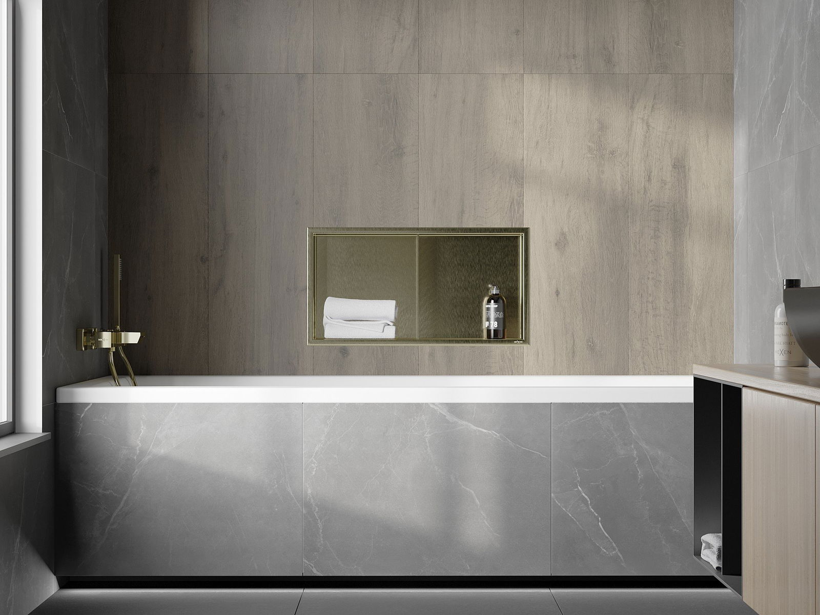 Możliwość montażu w ścianie lub w specjalnie przygotowanej zabudowie. Jest to niezwykle nowoczesne i funkcjonalne rozwiązanie, pozwalające zaoszczędzić przestrzeń oraz dopasować produkt do estetyki wnętrza i stworzyć spójną kompozycję.