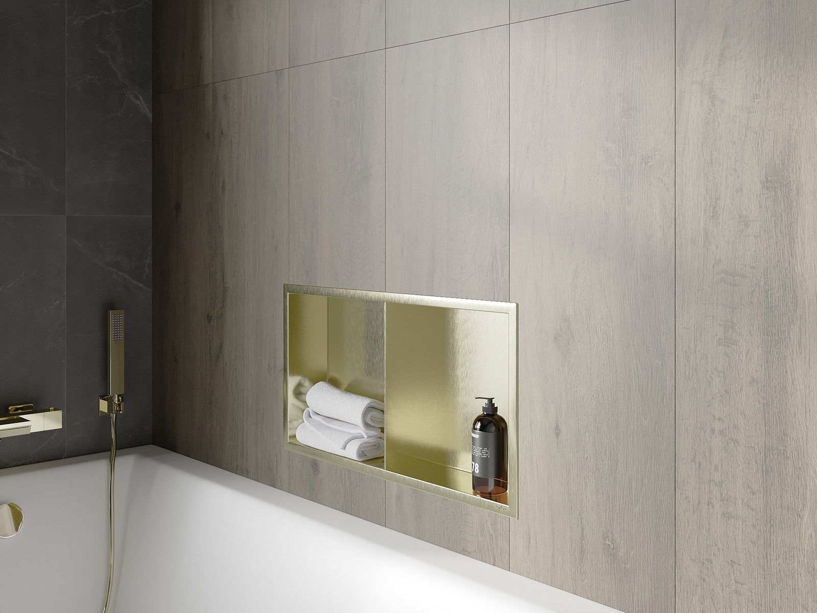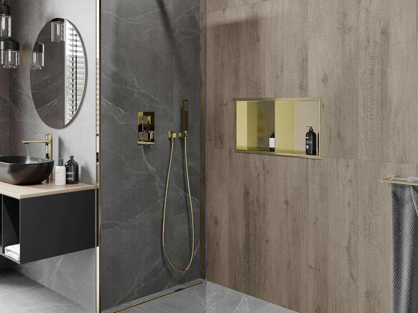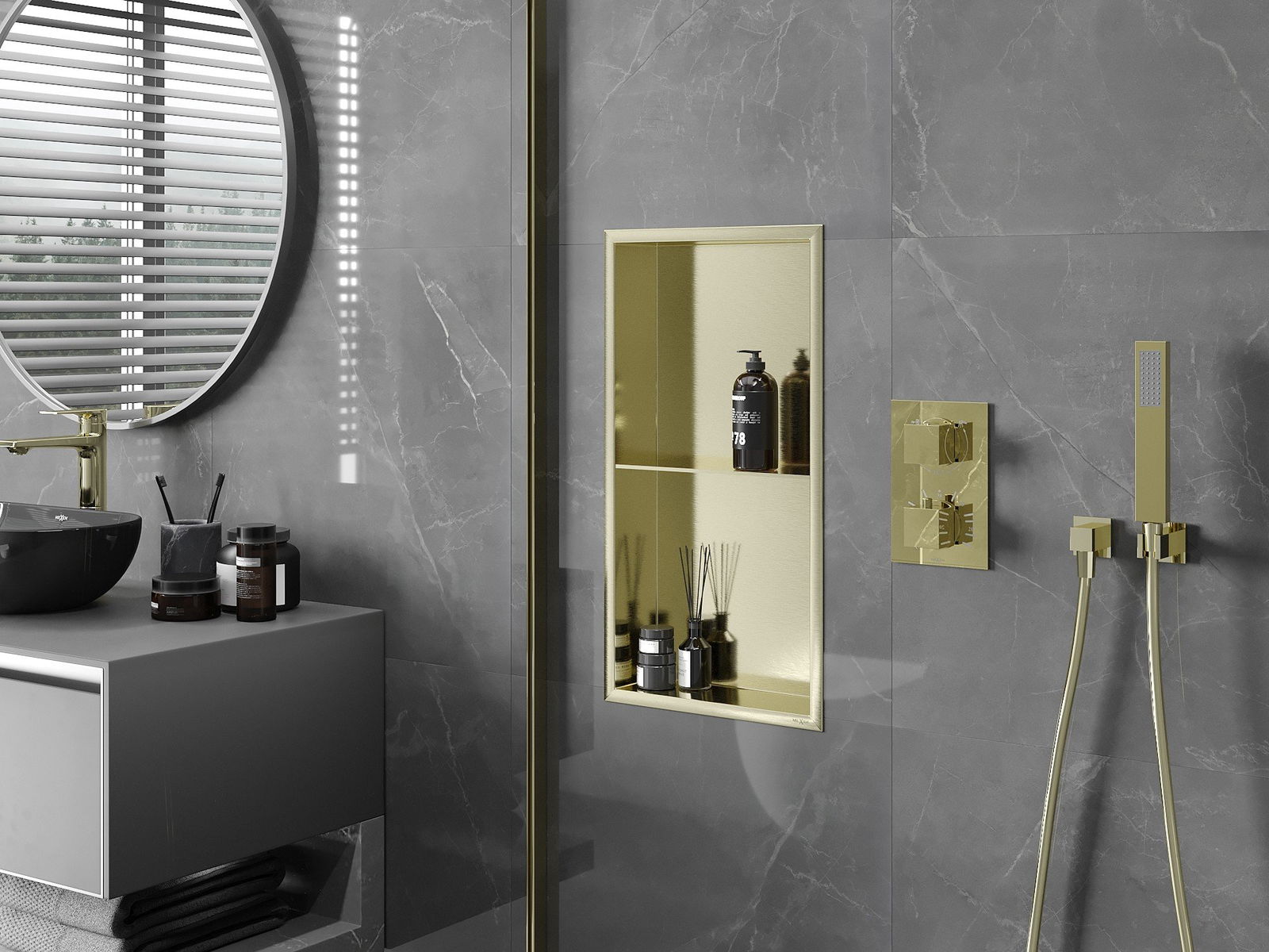Mexen X-Wall-R półka wnękowa z kołnierzem i półką 60 x 30 cm, złota szczotkowana - 1950603010S